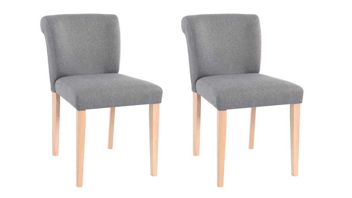 Revêtement en tissu gris et piétement en bois clair, elle vous apportera un confort sans limite. Courbes parfaitement dessinées, cette chaise est raffinée.