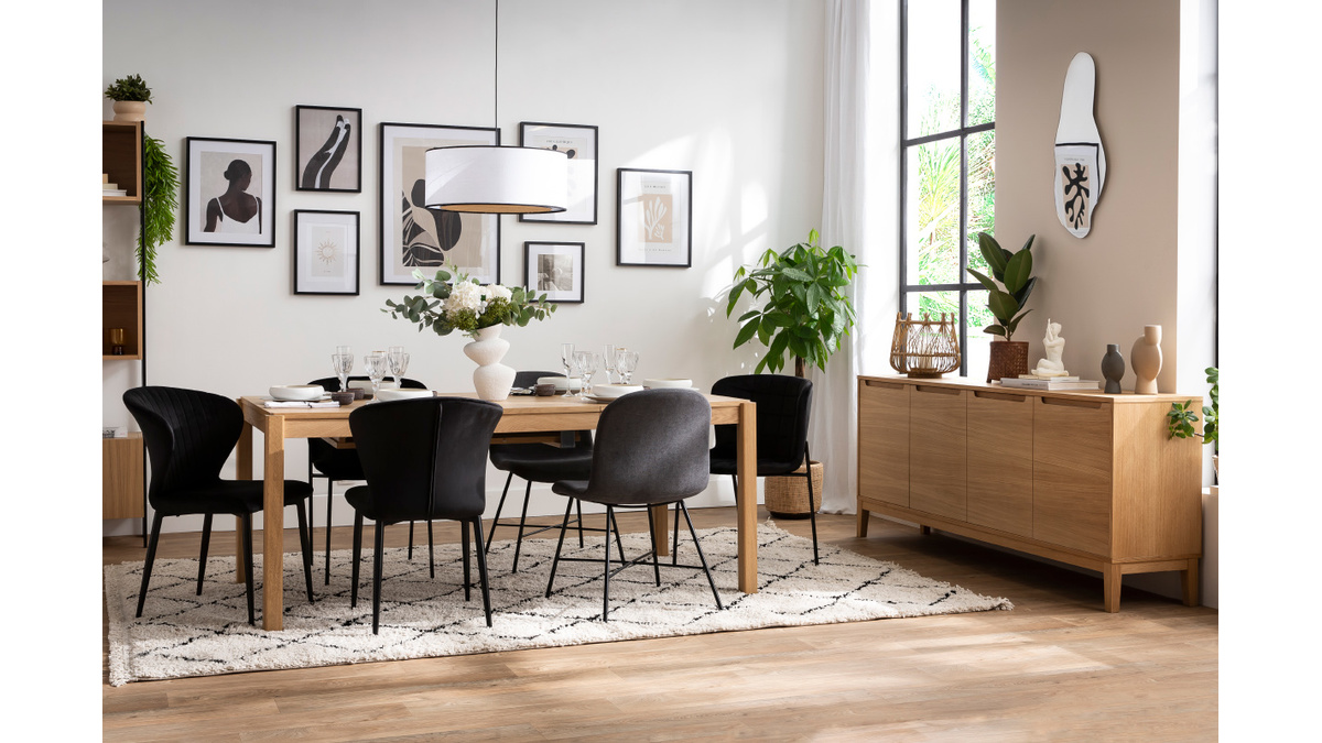 Pour mettre en valeur son élégance, disposez REQUIEM autour d'une table à manger design.