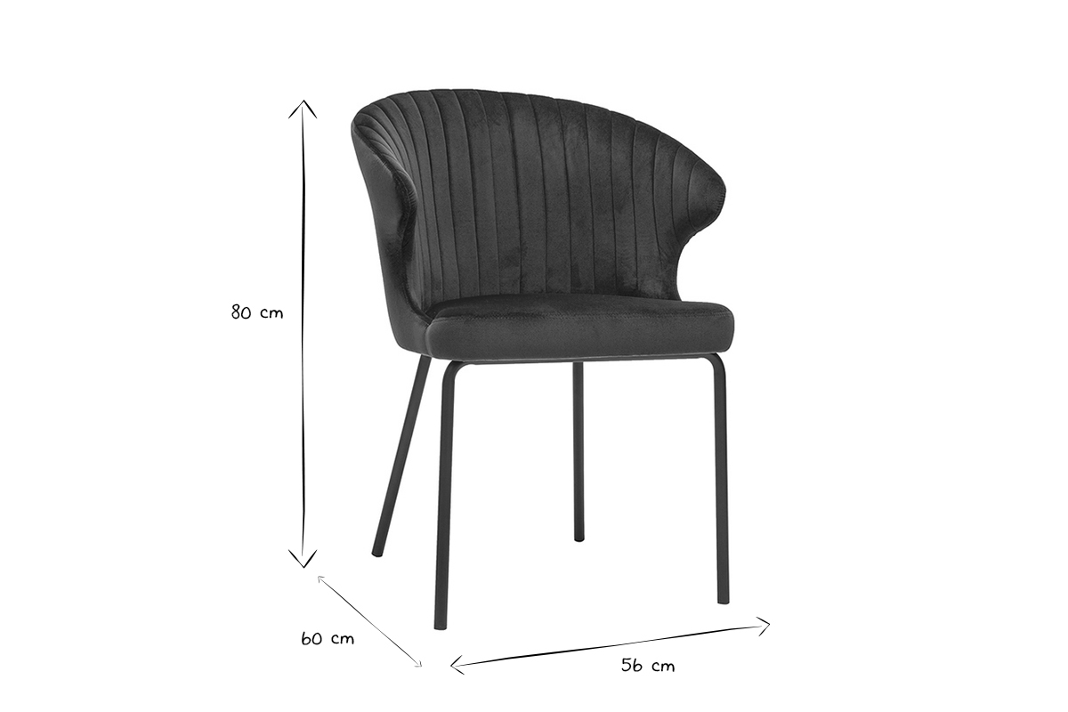 Chaise design en tissu velours bleu canard et métal noir livrée prête à monter.