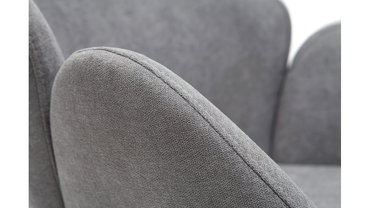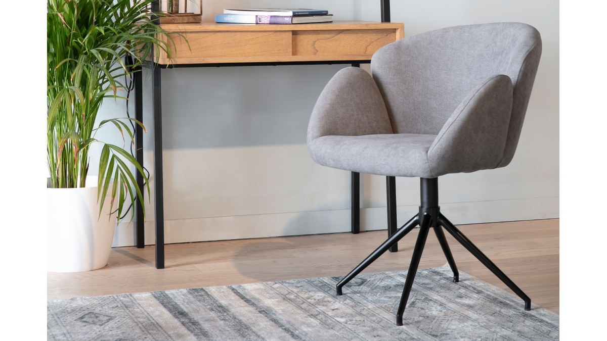 La chaise RHAPSODY trouvera sa place aussi bien autour d'une table ronde vintage que d'une table à manger moderne. Son revêtement en tissu effet velours gris ne se démode pas et se mariera facilement avec différents styles d'assises.