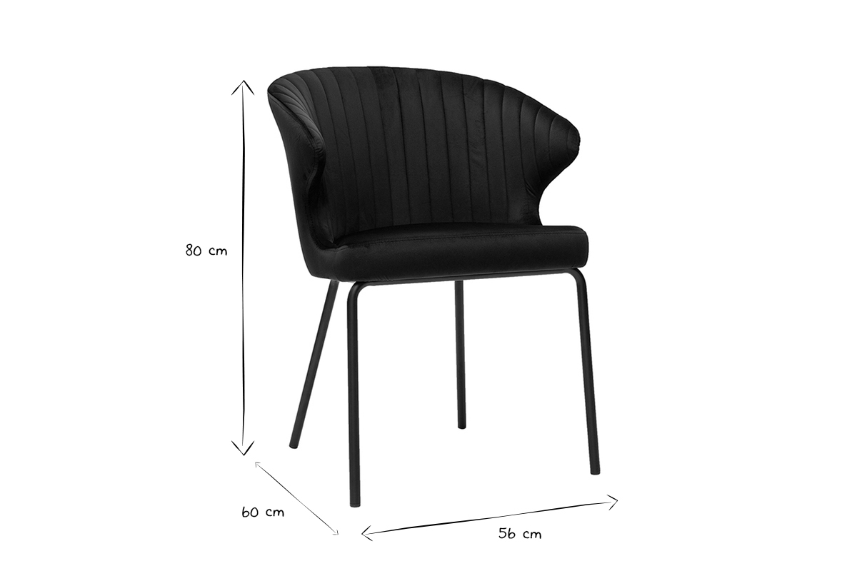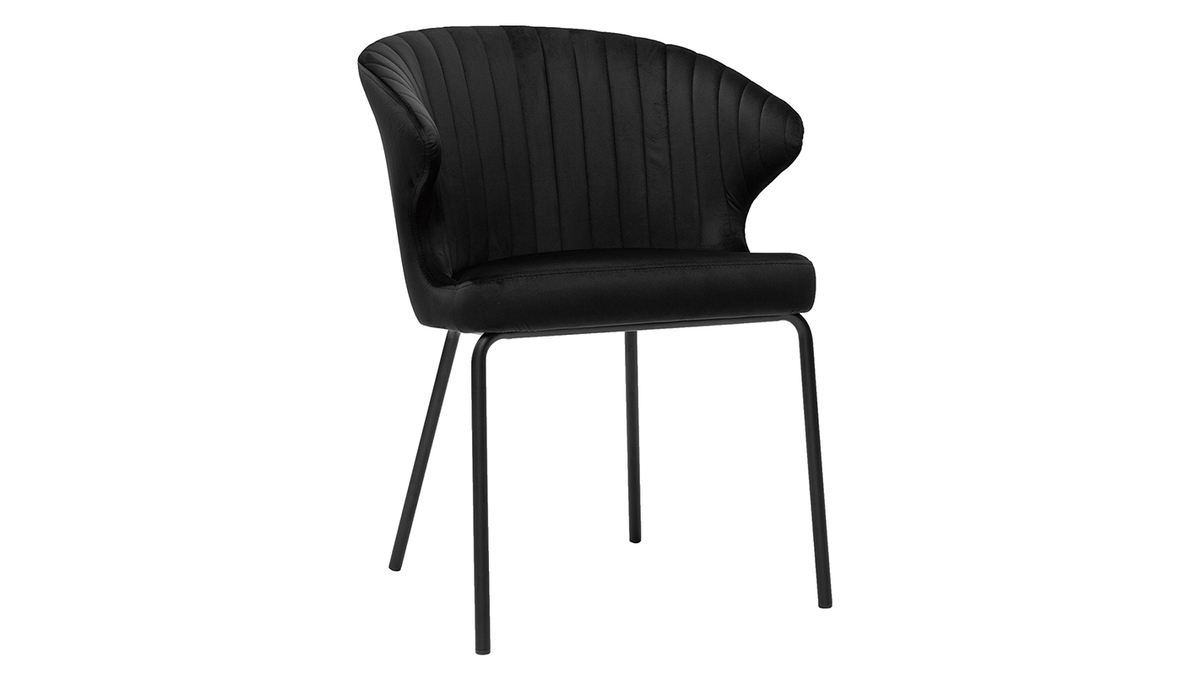 Chaise design noire en tissu velours et métal livrée prête à monter.