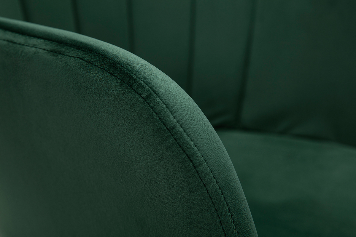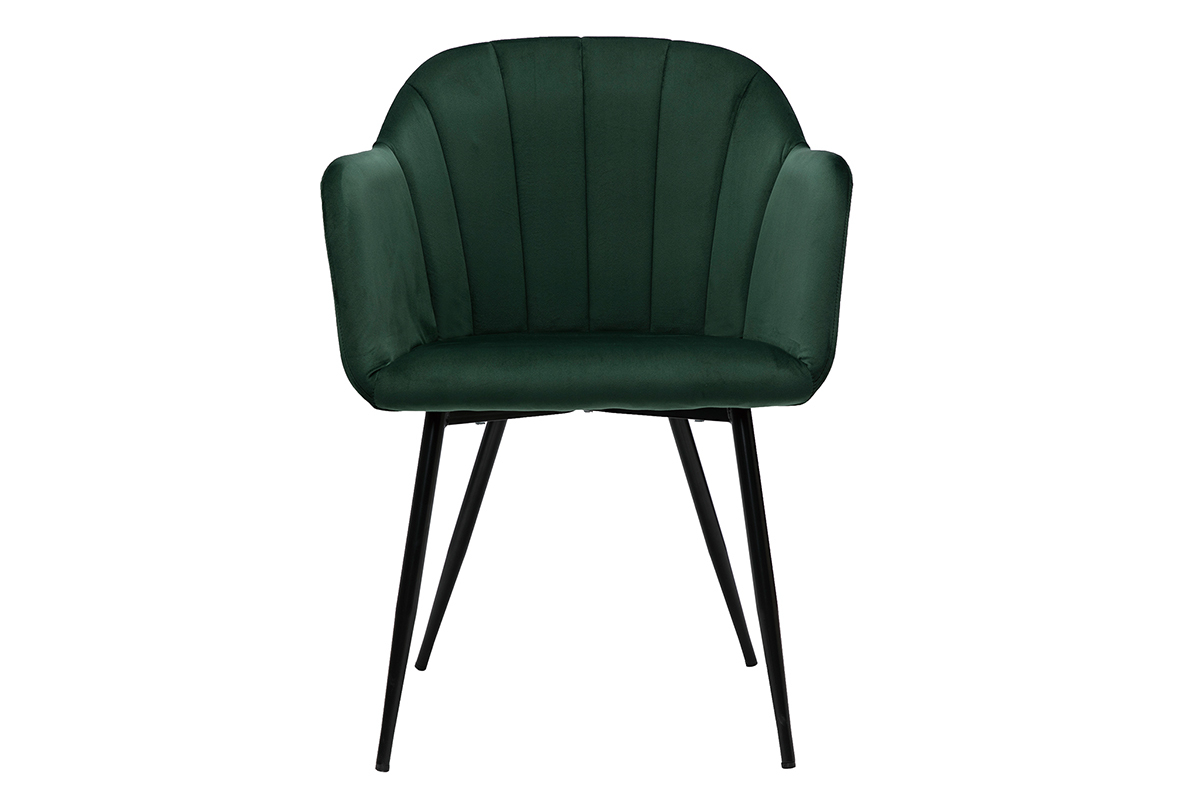 Élégante et raffinée, elle marie avec aisance son assise en velours vert à des pieds fuselés en métal noir. Ce piètement aérien vient parfaire son look et signe son style ultra contemporain.