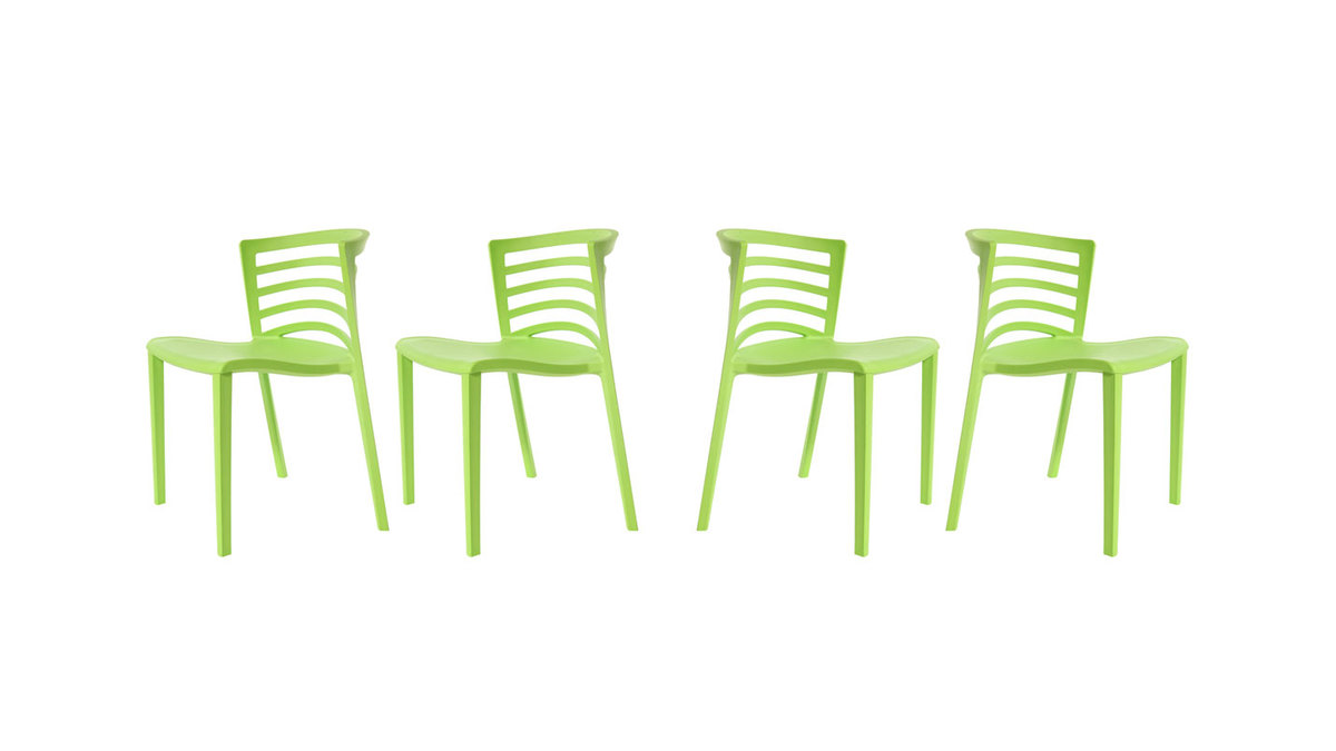 Prix indiqué pour un lot de 4 chaises.Déclinée en vert et en blanc.