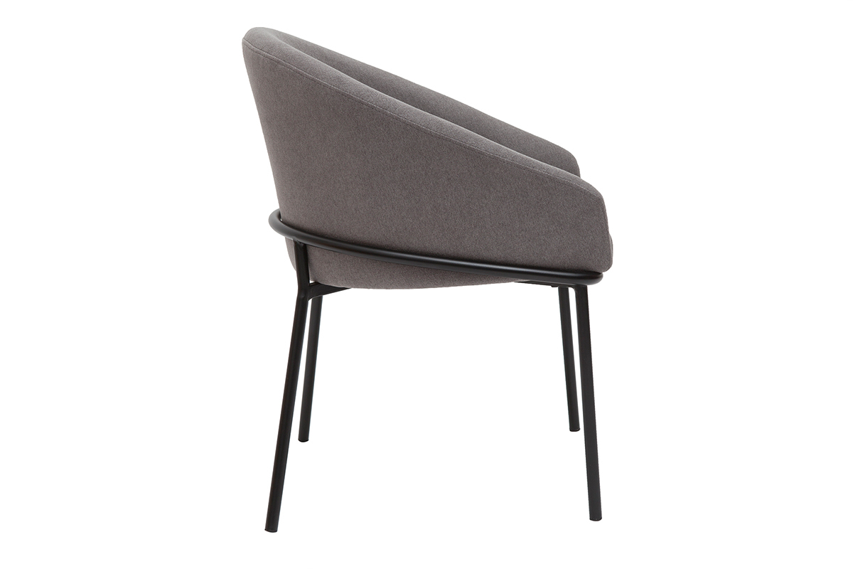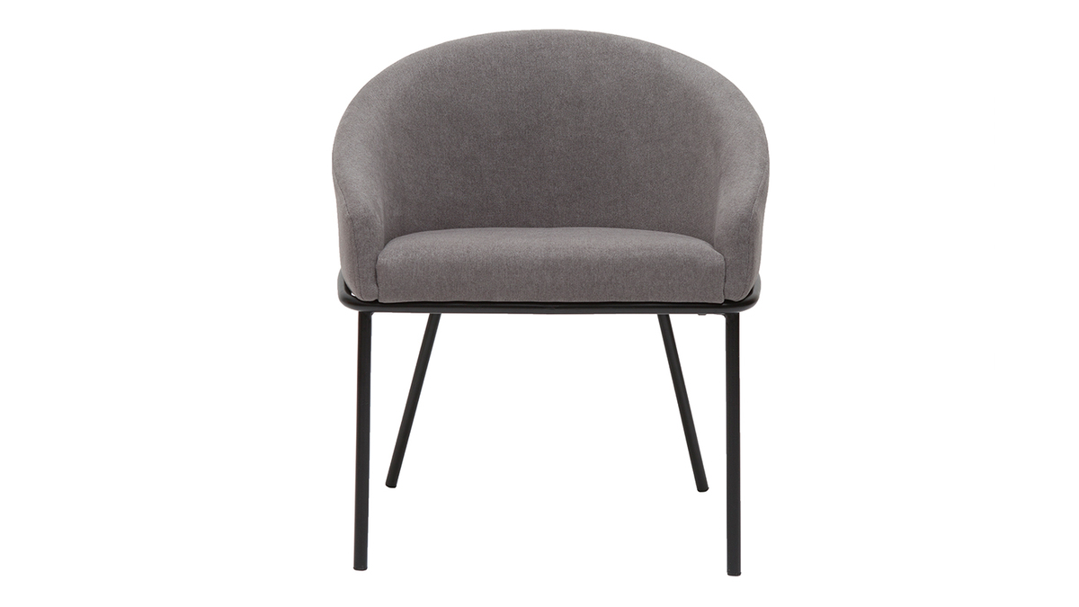 Comme délicatement déposé sur un moderne piètement noir, le fauteuil tout en rondeur contraste de son intemporel gris chiné. Un coloris apaisant qui apportera une note sobre et raffinée à votre tablée. À la fois graphique et aérienne, cosy et accueillante, la silhouette singulière de cette chaise révélera la personnalité élégante de votre intérieur. Meilleure alliée des salles à manger trendy, on imagine cette chaise design régner en maître dans une pièce de vie au style contemporain.