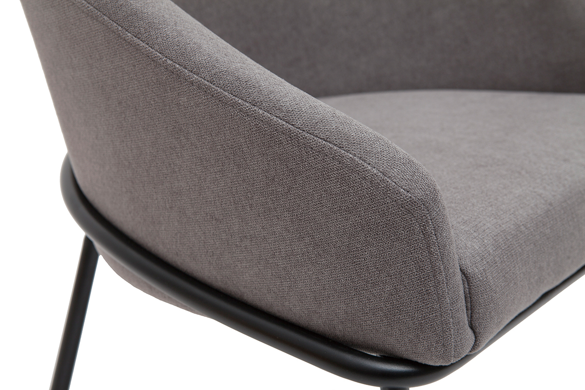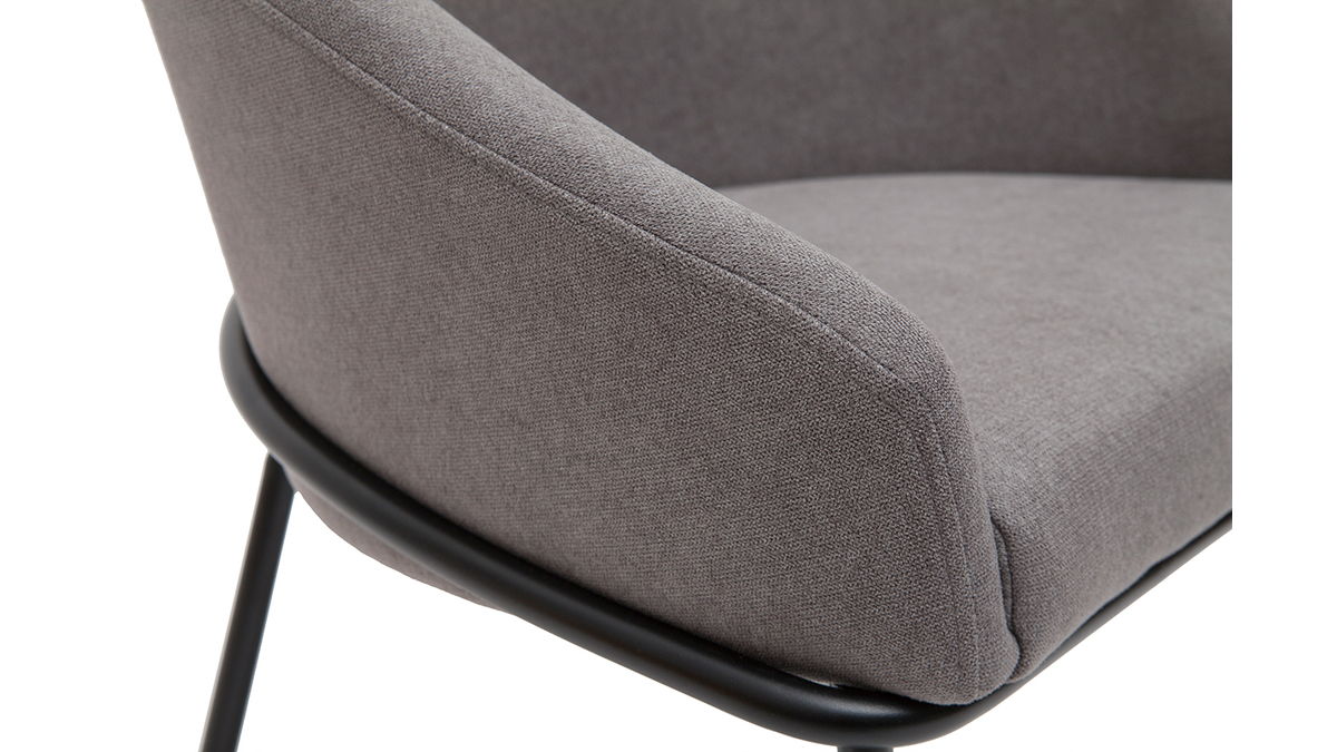 Galbé par une mousse agréable et souligné par une structure et 4 robustes pieds en métal, le siège se profile en une seule pièce. Large assise et dossier enveloppant prolongent leurs lignes vers des accoudoirs justement positionnés pour épouser la posture naturelle du corps. Très agréable au toucher, le revêtement en tissu effet velours (90% polyester, 10% nylon) accompagnera de douceur vos repas et moments conviviaux.