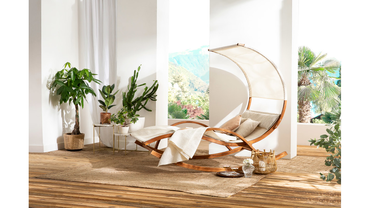 La structure travaillée tout en mélèze est parfaite pour aménager un espace détente extérieur apaisant et convivial. La chaleur du bois et la douceur du blanc forment un ensemble harmonieux qui s'inscrit parfaitement dans une déco de jardin à l'esprit zen et naturel. Avec ses tons neutres et intemporels, la chaise longue NANAWA s'accorde en toute simplicité avec votre mobilier de jardin.
