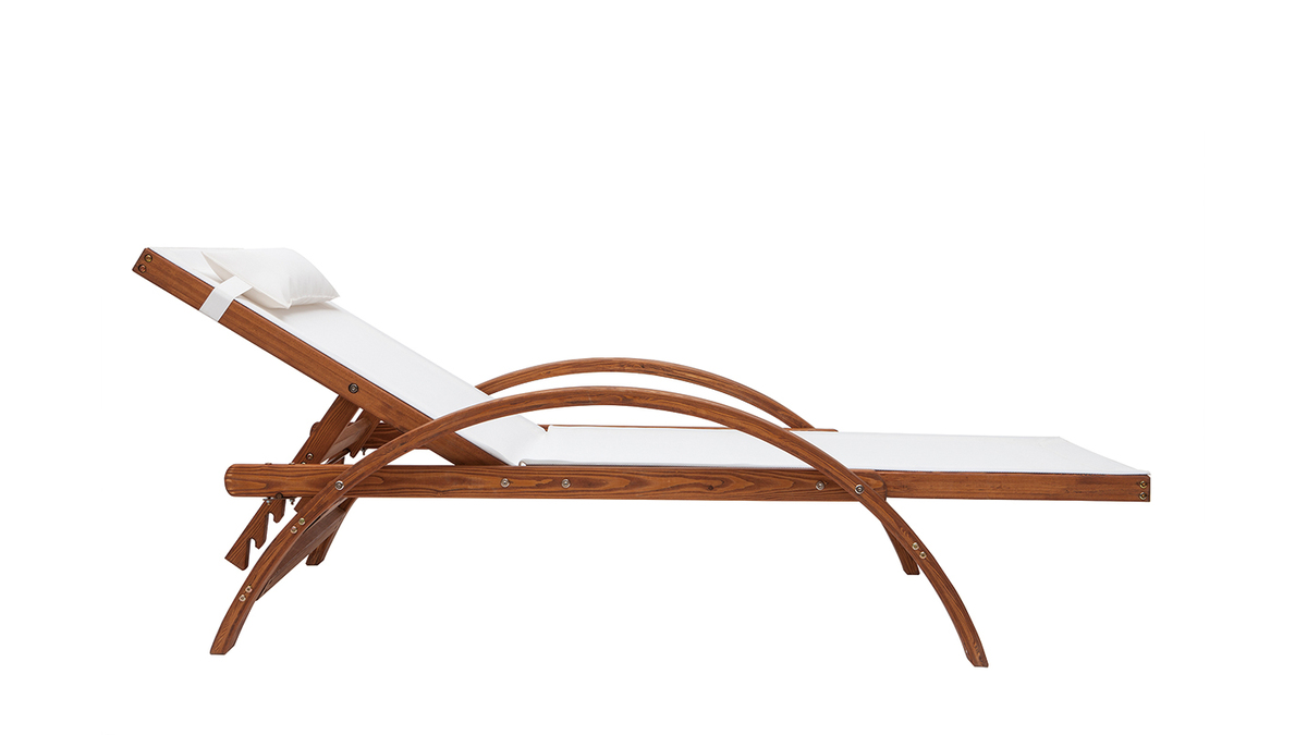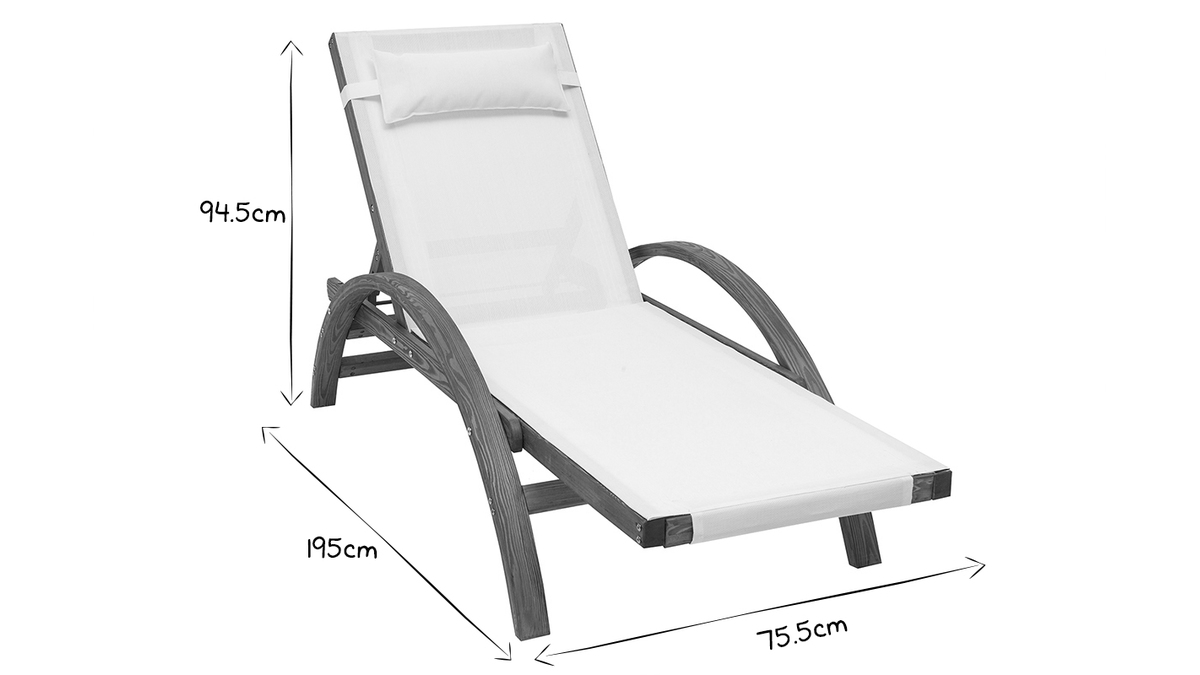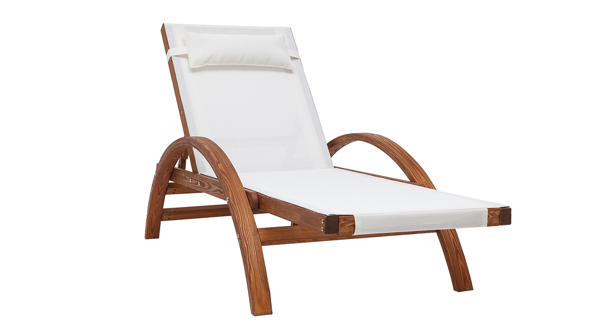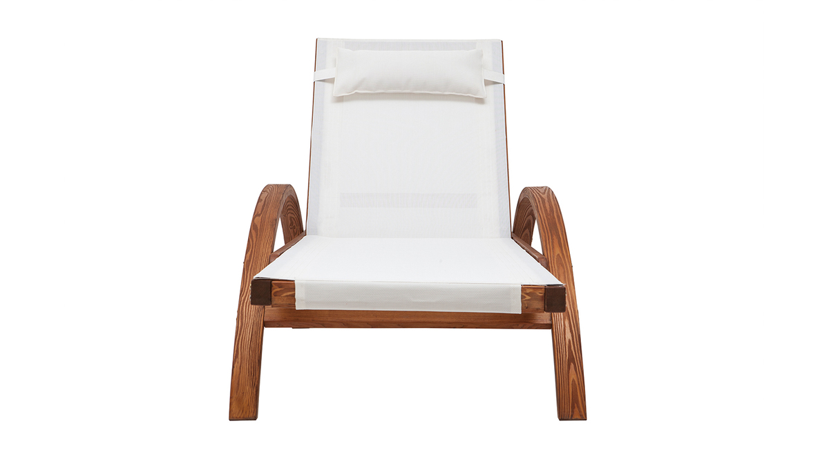 Aménagez un espace détente confortable et chaleureux avec la chaise longue PIANA en mélèze et textilène blanc !