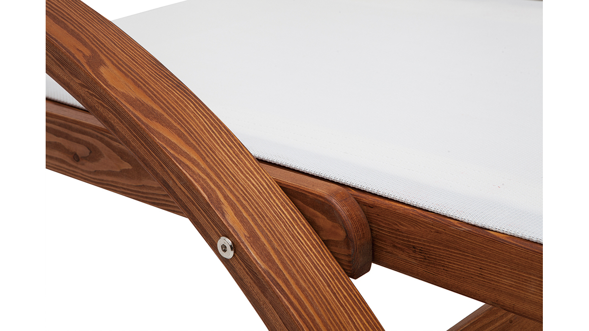 Avec ses formes arrondies, sa structure chaleureuse en mélèze et son assise réglable, PIANA est idéale pour s'accorder un moment d'évasion dans le jardin. Le mariage entre le tissu blanc et l'aspect authentique du bois transforme le jardin en repère zen ultra tendance. Le design de ce bain de soleil s'accorde en toute simplicité avec la décoration de votre extérieur.