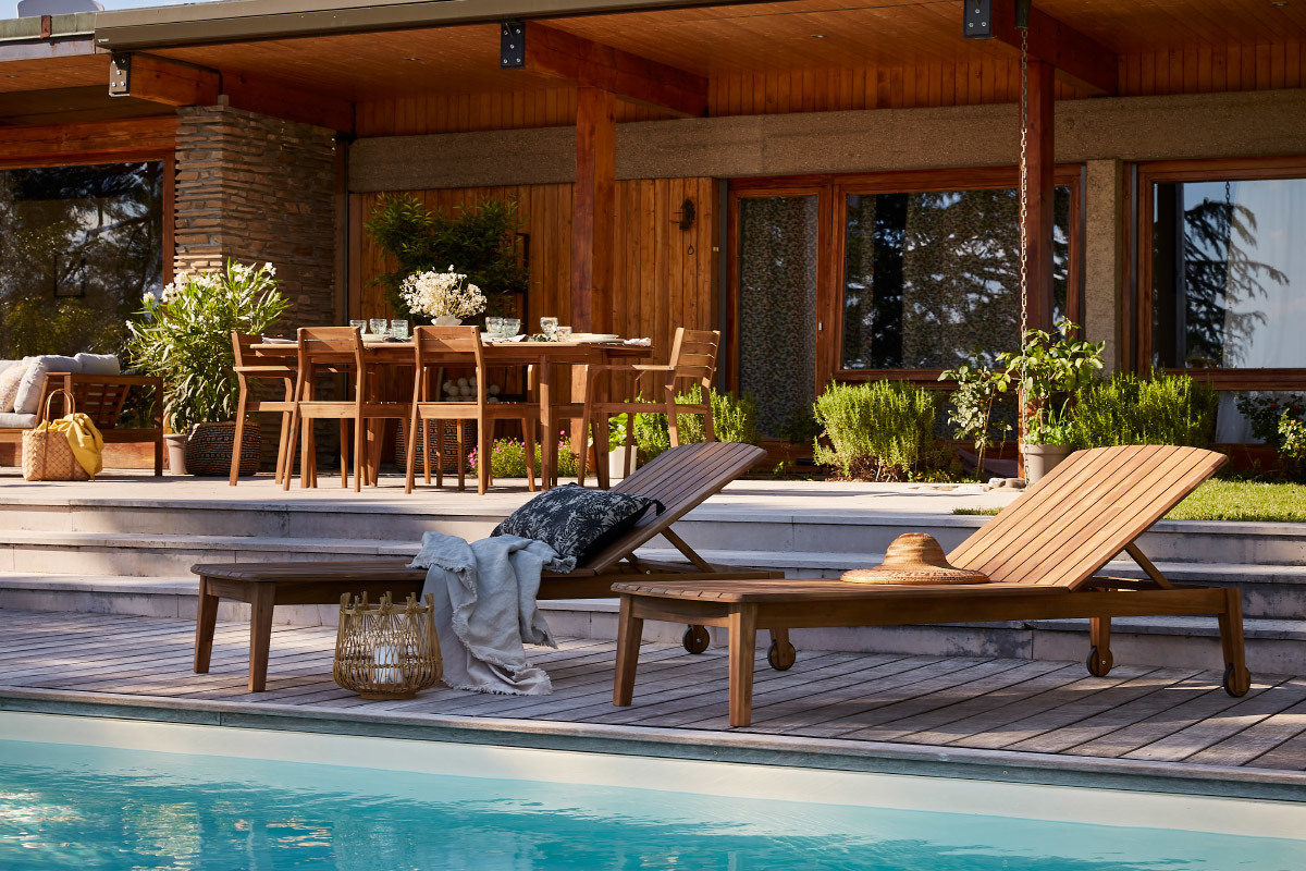 Avec la collection CANOPEE, retrouvez toute la beauté et l'authenticité du bois massif pour vos extérieurs. La collection comprend également un ensemble de tables et chaises pour l'extérieur.