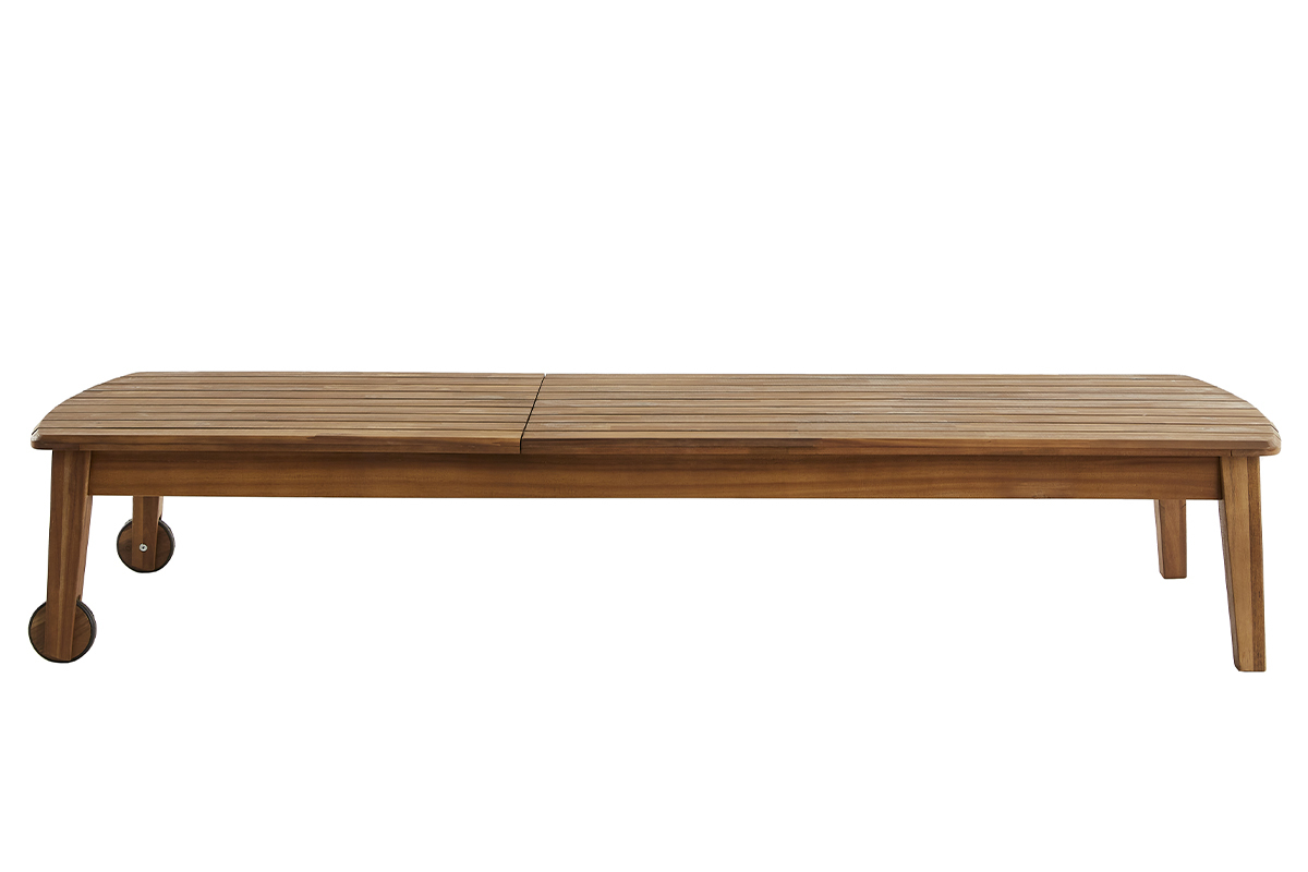 Avec ses lignes épurées et classiques, ce bain de soleil en acacia massif est une pièce intemporelle. L'acacia est un bois robuste et stable, de nature quasi imputrescible, qui se distingue par ses nuances uniques, rougeoyantes et infiniment chaleureuses. Une huile est appliquée sur le bois afin de le protéger des conditions climatiques extérieures. Cette finition naturelle laisse transparaître les multiples veines de cette essence exotique à la beauté affirmée.