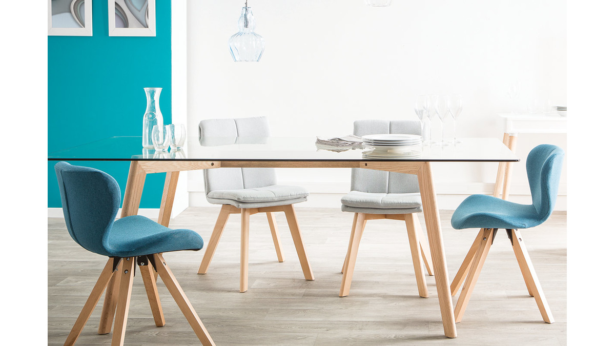Le coin repas est un espace confortable où l'on prend le temps de profiter d'instants privilégiés, en famille ou entre amis. Pour prolonger ces moments de partage, rien de plus important que des chaises confortables ! Avec son siège travaillé tout en rondeurs, son assise rembourrée et son dossier enveloppant la chaise ANYA est un petit cocon de confort et de douceur. Elle associe à merveille un revêtement en tissu bleu canard (100% polyester), au toucher agréable, et un piètement en bois clair en hêtre massif. Joli mélange de formes et de matières, cette chaise bleu canard s'expose autour de la table comme une véritable élément déco ! Parfait pour décoration de salle à manger à la fois cosy et tendance.
