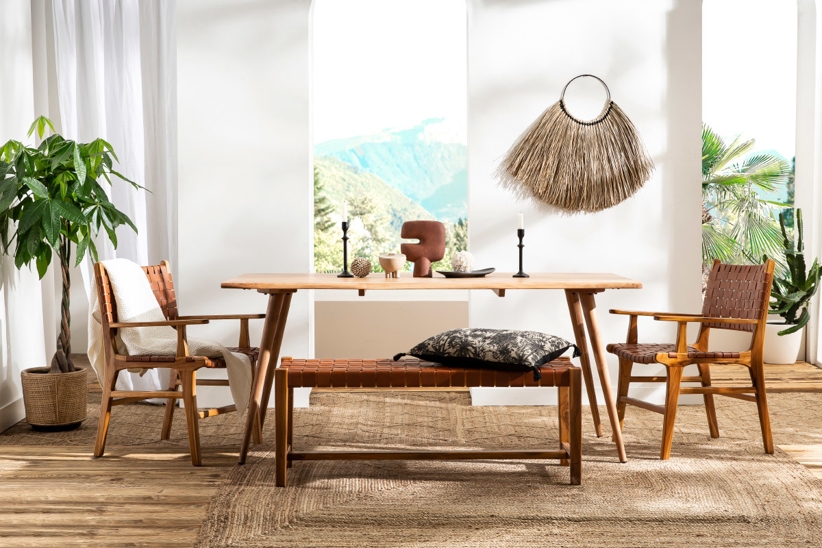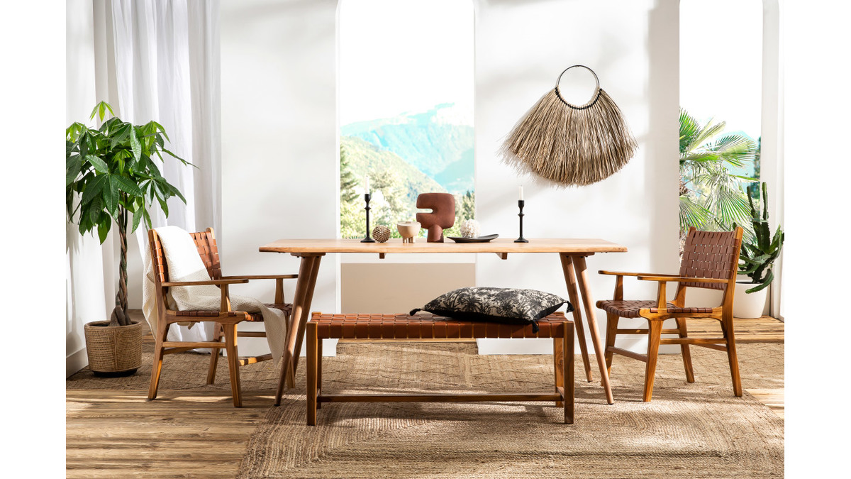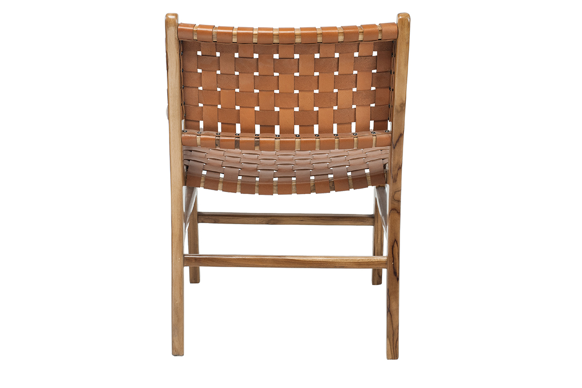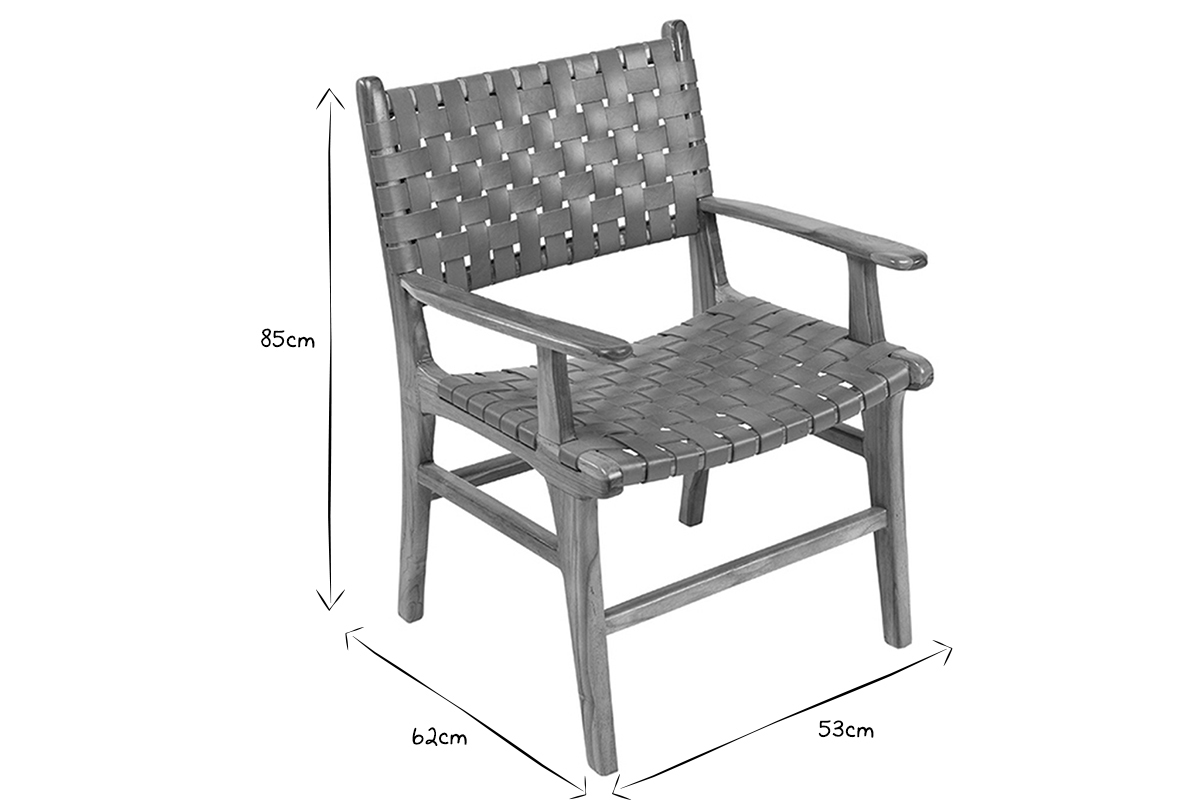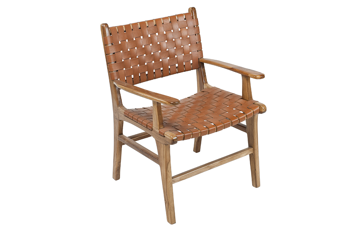 Teck massif et cuir de vache tressé ont été associés pour offrir une chaise à la beauté brute. Grâce à son mélange de matières naturelles, cette chaise artisanale nous transporte dans la grande tendance du style ethnique. On aime particulièrement sa structure tout en courbes et le joli tressage réalisé à la main. Petit bijou d'authenticité, cette chaise fauteuil en bois foncé réchauffe immédiatement notre intérieur par ses tons naturellement chauds.