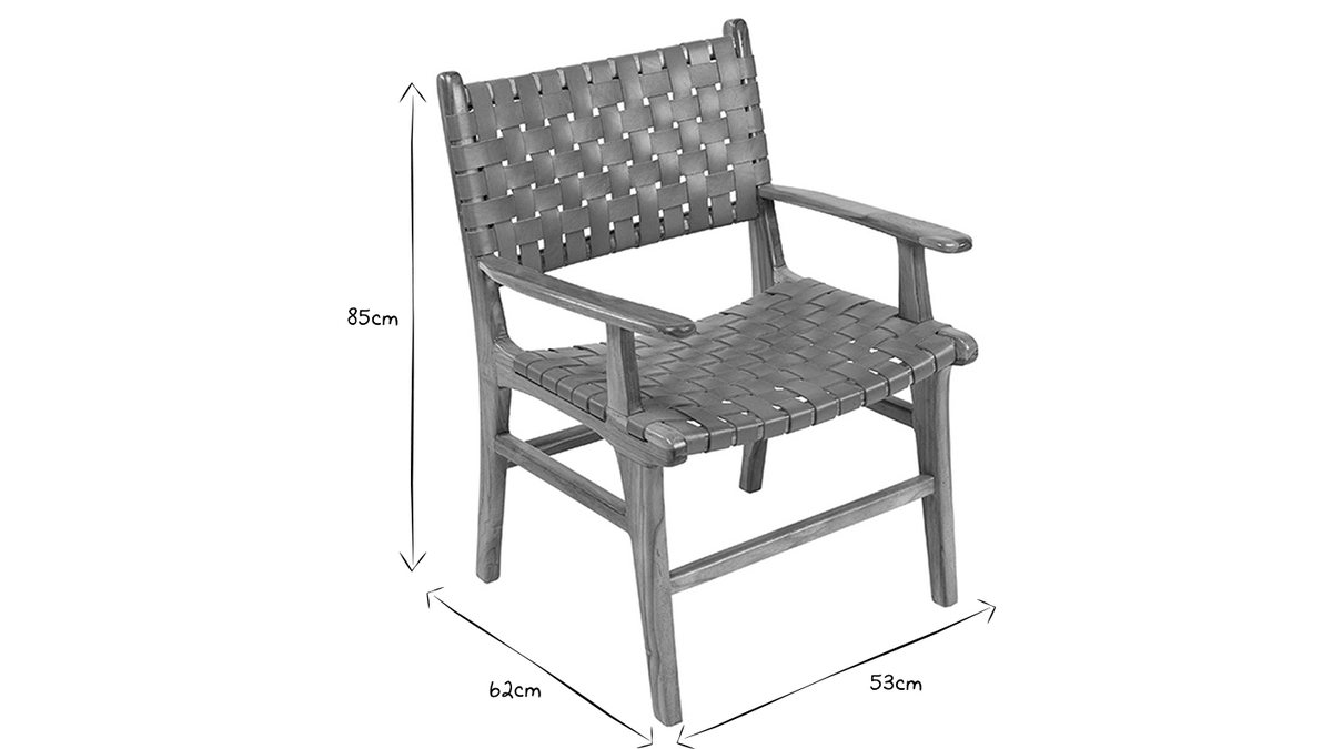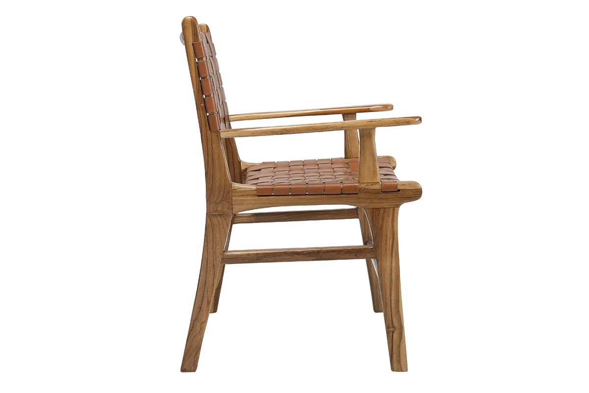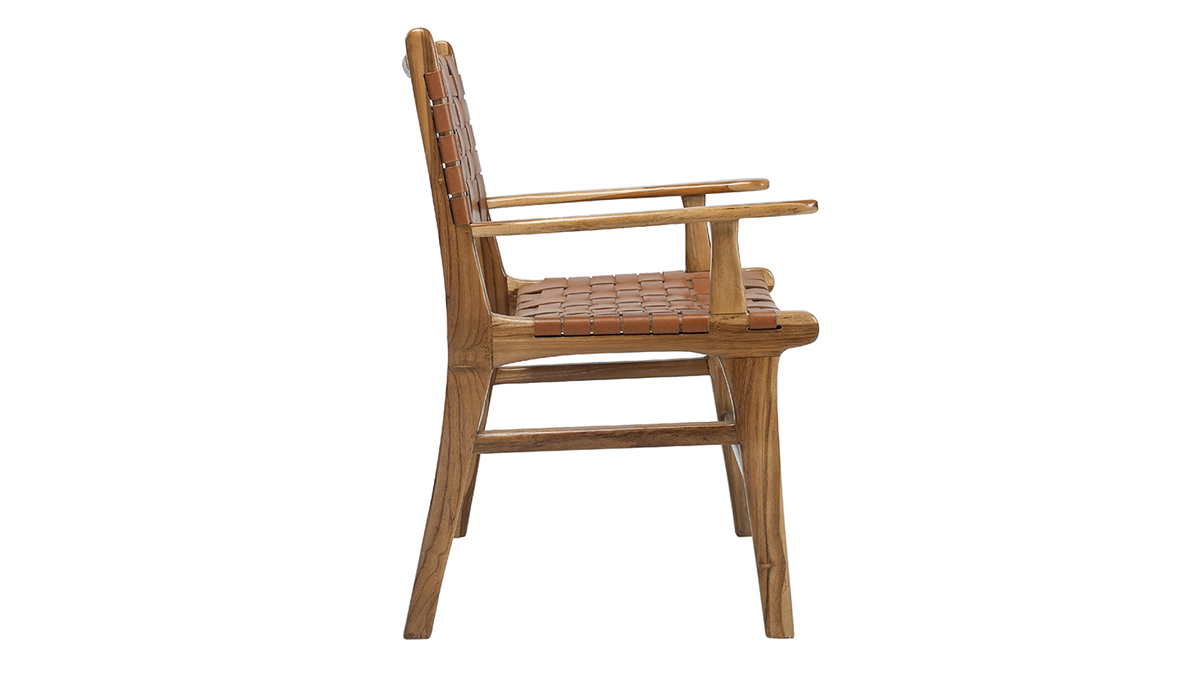 Chaise en bois teck massif et sangles en cuir marron : LODGE est une pièce d'exception réalisée avec des matériaux bruts au charme naturel. Son dossier et ses accoudoirs offrent un parfait maintien. Table à manger et bureau en bois ont trouvé la chaise idéale pour les accompagner de la plus belle manière. Le teck est un bois tropical apprécié pour sa solidité et ses jolies nuances. Il a toute sa place dans les lieux de vie.