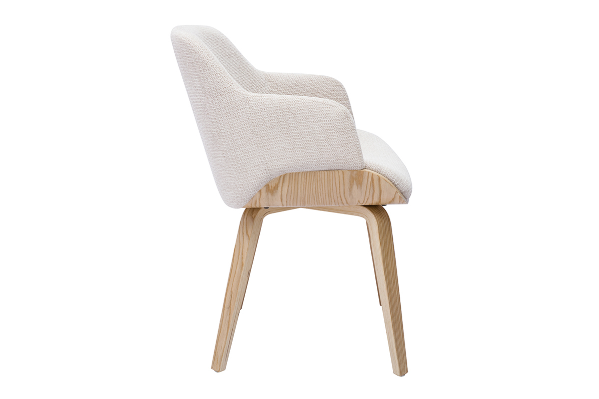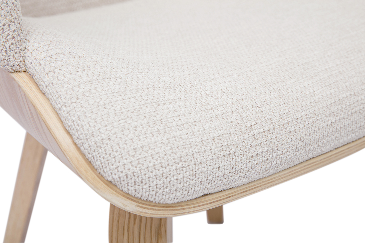 Cette chaise se distingue par ses lignes épurées et un revêtement en tissu chenille beige. La teinte neutre du tissu apporte une touche de douceur et s’harmonise parfaitement avec une large palette de styles décoratifs, qu’ils soient scandinaves, modernes ou minimalistes. Son piétement en bois clair, aux courbes délicates, accentue l’aspect naturel de la chaise et ajoute une note chaleureuse à votre intérieur. Le mélange de matériaux crée un contraste subtil qui attire le regard tout en restant intemporel.