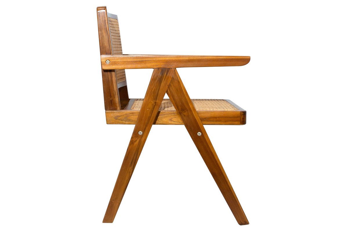 Chaise vintage en bois teck massif et cannage rotin JANNIE