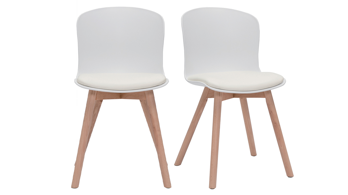 Un ensemble épuré, une silhouette fluide : ces chaises sont des éléments déco qui ne passent pas de mode. Elles associent un siège blanc en polypropylène et en polyuréthane à des pieds compas en hêtre massif. Leur look parfaitement maîtrisé s'adaptera à tous les intérieurs !