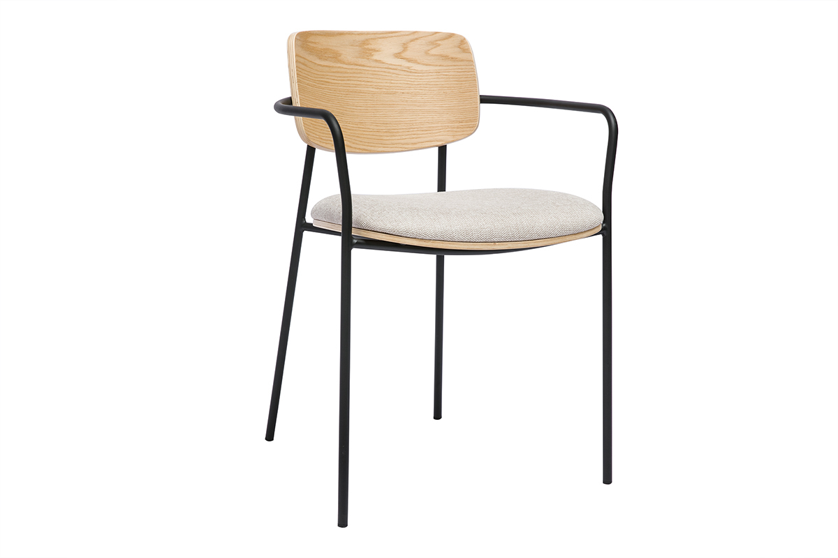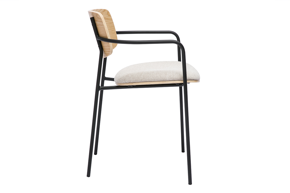 Dotées d’une structure légère et élégante, les chaises SUSAN se distinguent par leurs lignes sobres et raffinées. Leur dossier et leur assise sont conçus en bois clair et en tissu effet velours texturé beige, offrant un contraste harmonieux avec le piètement en métal noir mat. Ce mariage de matériaux souligne l’équilibre entre naturel et modernité, faisant de ces chaises un véritable atout déco. Le bois clair met en valeur le veinage, apportant chaleur et authenticité à votre intérieur, tandis que le métal noir renforce leur côté industriel et contemporain.