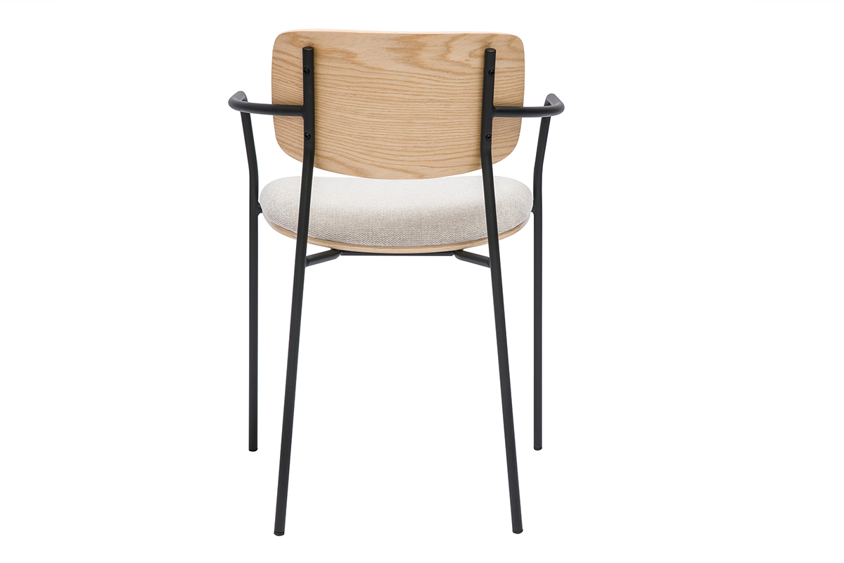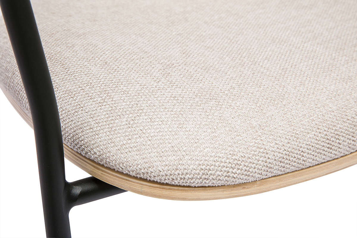 Ces chaises design ne se contentent pas d’être esthétiques, elles sont aussi pensées pour offrir un confort optimal. Leur assise ergonomique en contreplaqué peuplier finition chêne et en tissu effet velours texturé beige épouse parfaitement les courbes du corps, permettant une position assise agréable même lors d’une utilisation prolongée. Le dossier légèrement incliné soutient le dos, favorisant une posture relaxante.