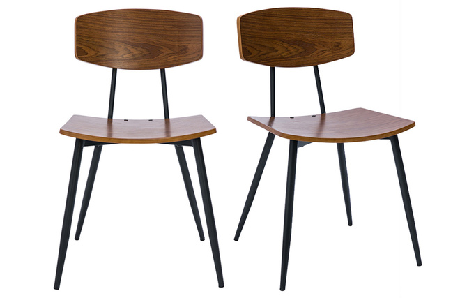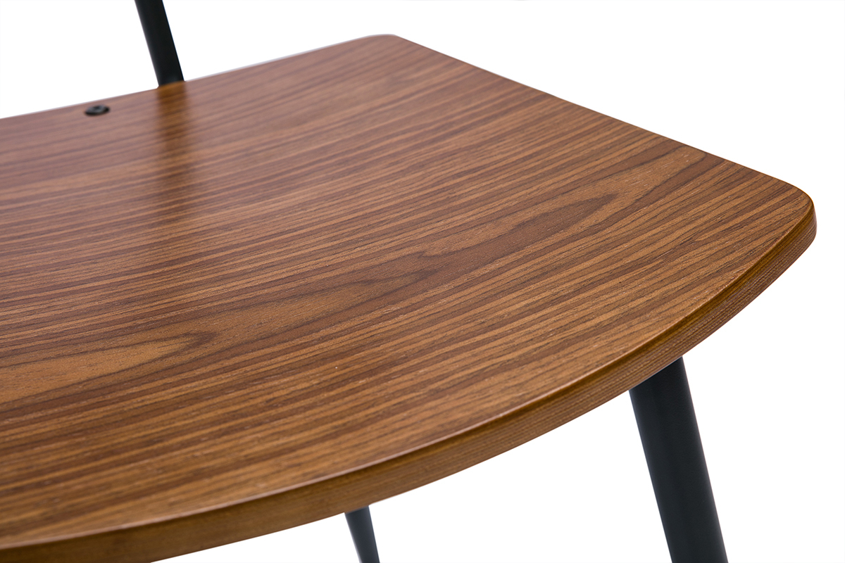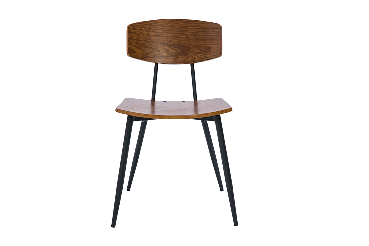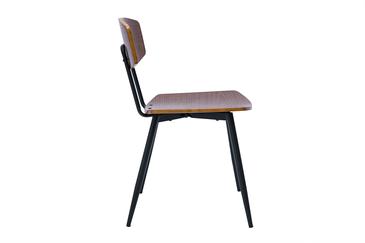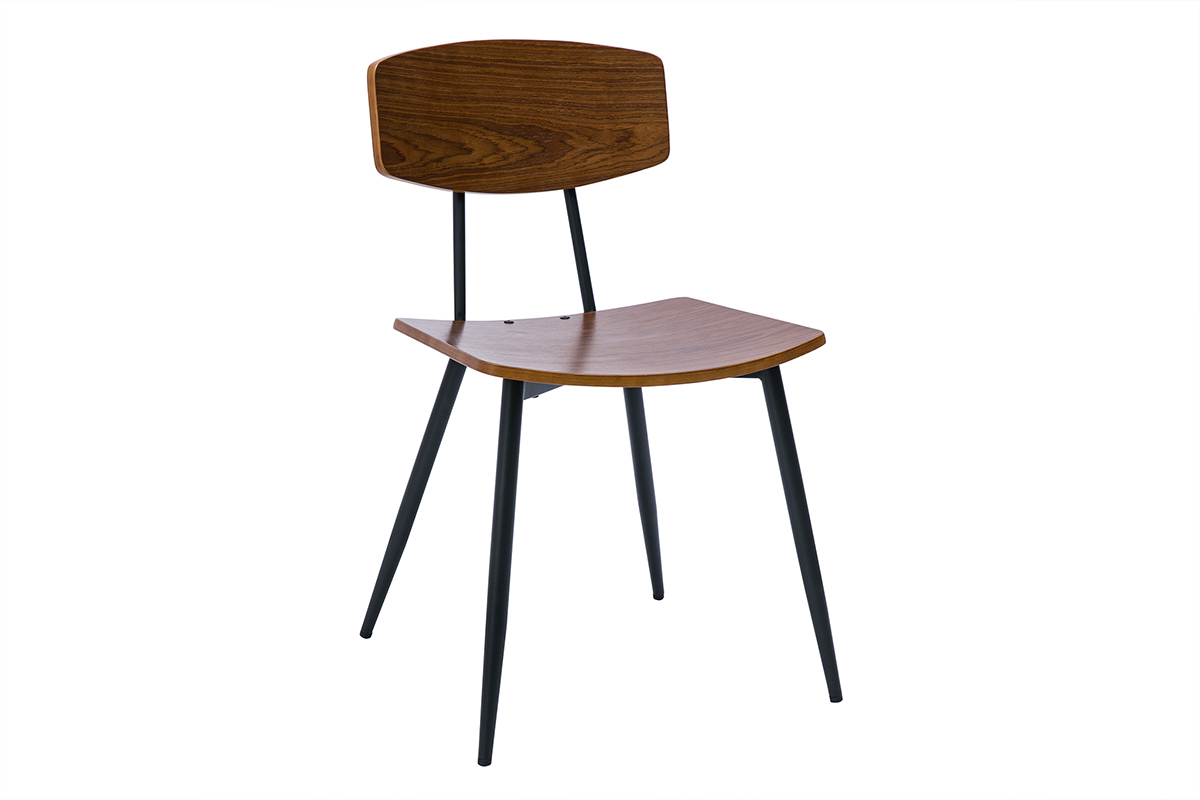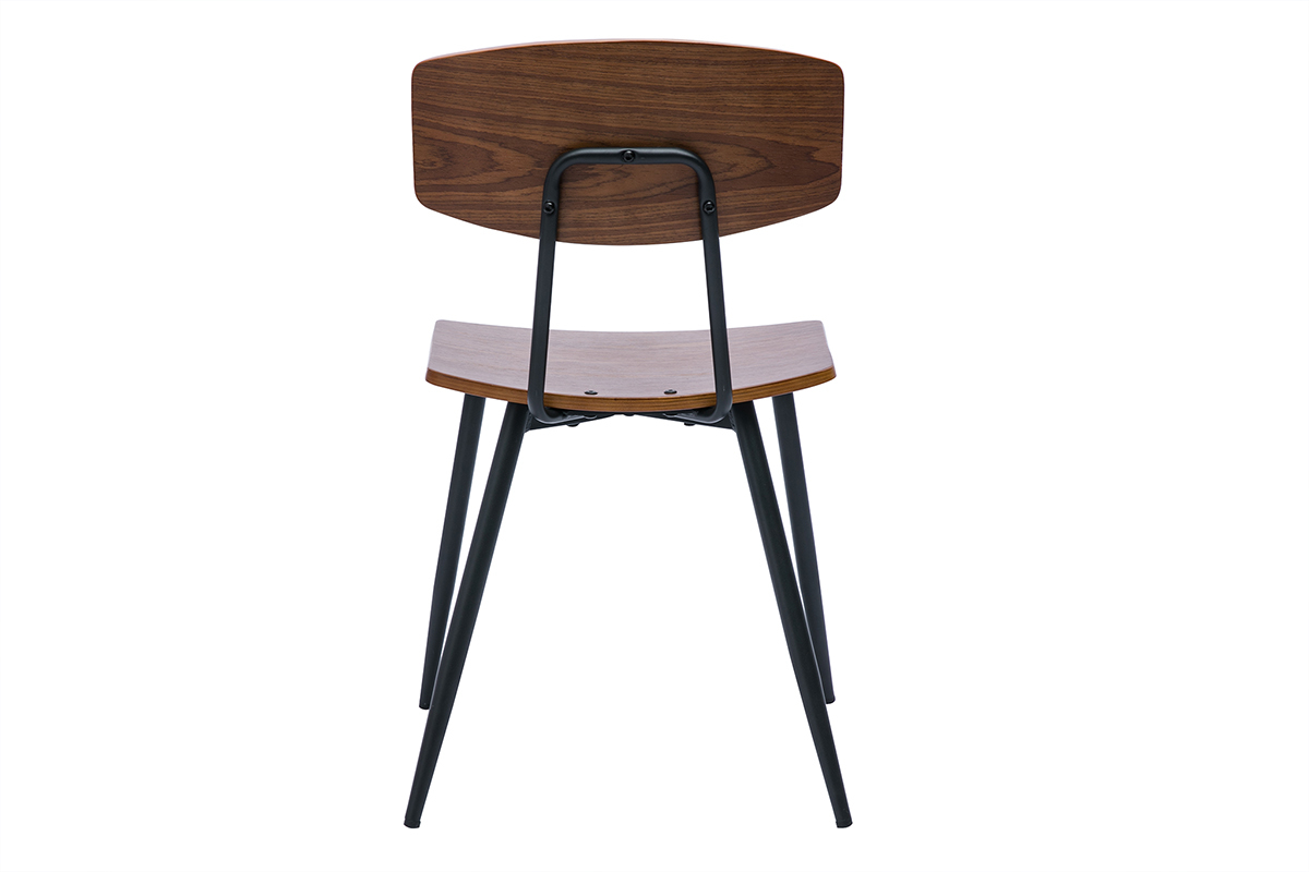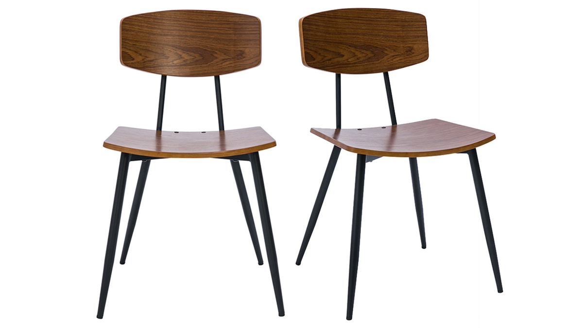 Chaises vintage en bois foncé noyer et métal noir JOLINE vendues par lot de 2. Montage simple, seuls les pieds sont à fixer.