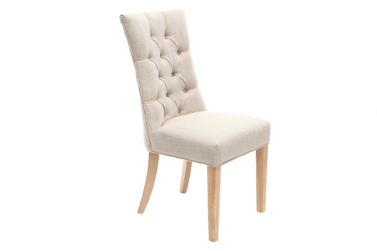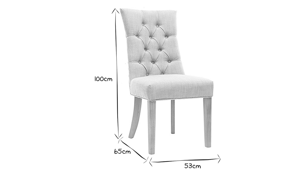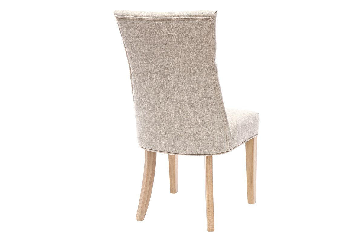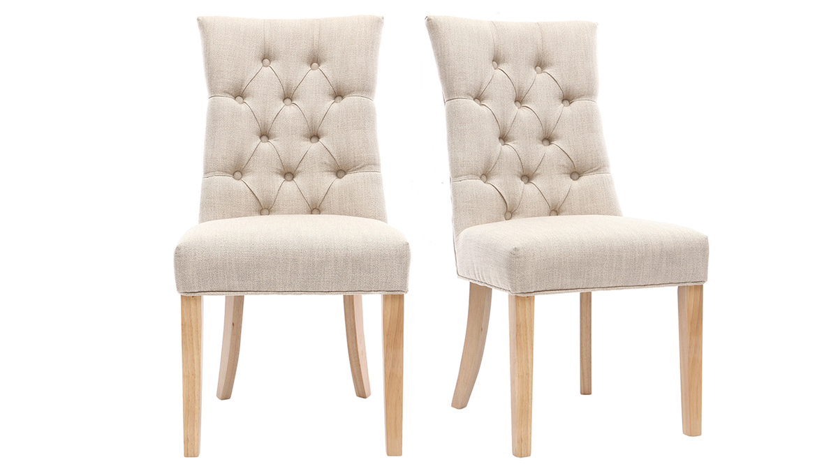 Sans artifice, elles possèdent beaucoup d'élégance grâce à un grand dossier capitonné et des pieds en bois massif. Très agréables au toucher, leur revêtement en tissu 100% lin coloris beige naturel apportera une touche d'épure à votre pièce de vie. Le dossier épouse parfaitement les courbes de votre dos pour un bon maintien. Les pieds, à l'arrière, sont inclinés et arrondis pour donner une touche unique à ces chaises.