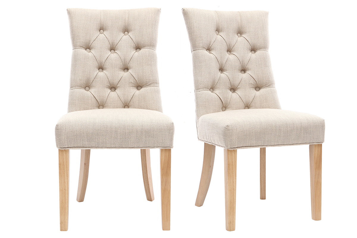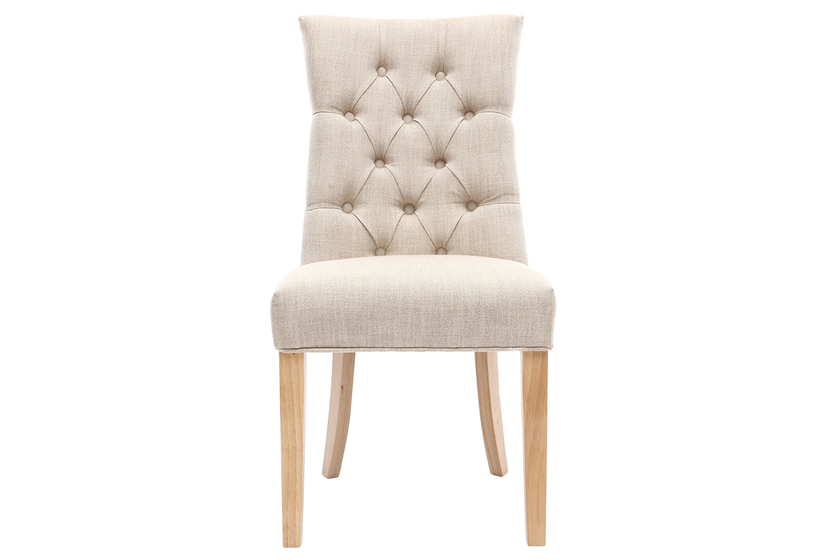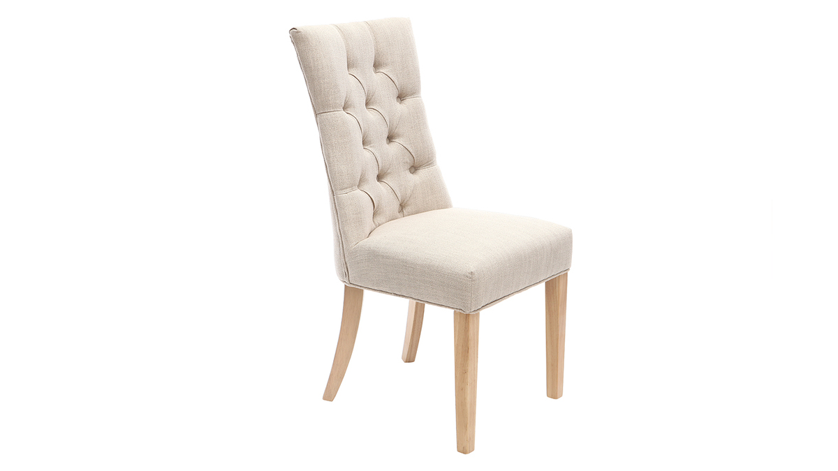 Sans artifice, elles possèdent beaucoup d'élégance grâce à un grand dossier capitonné et des pieds en bois massif. Très agréables au toucher, leur revêtement en tissu 100% lin coloris beige naturel apportera une touche d'épure à votre pièce de vie. Le dossier épouse parfaitement les courbes de votre dos pour un bon maintien. Les pieds, à l'arrière, sont inclinés et arrondis pour donner une touche unique à ces chaises.