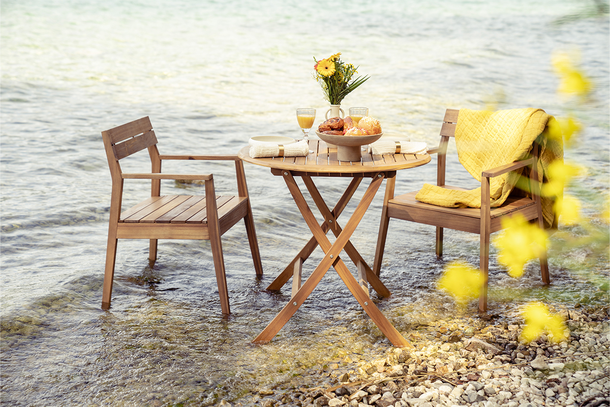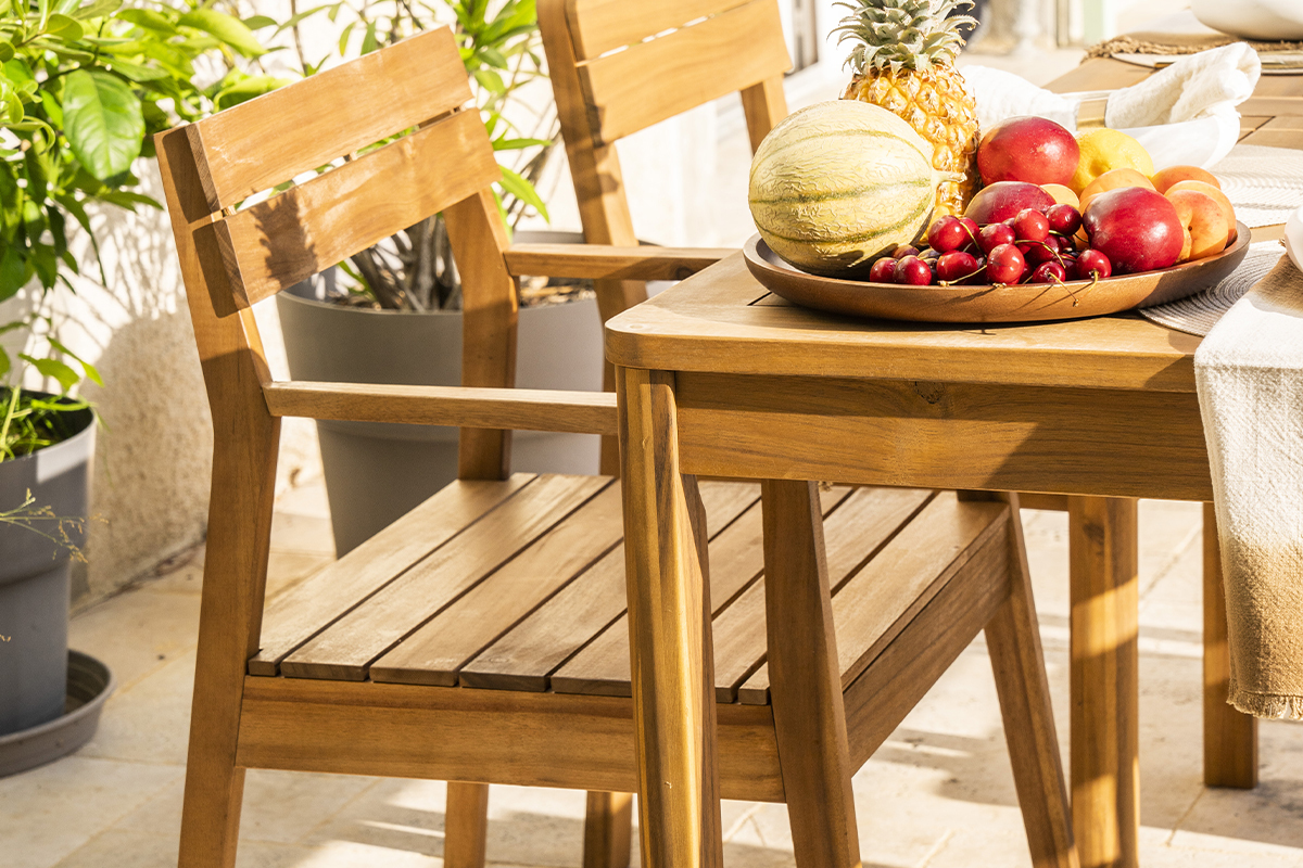Accompagnées d'une table de jardin en bois issue de la même collection, vous créerez un décor aussi harmonieux que chaleureux !