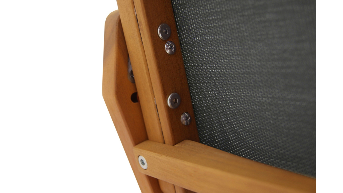 Matières : acacia massif huilé - toile textilène 100% polyester