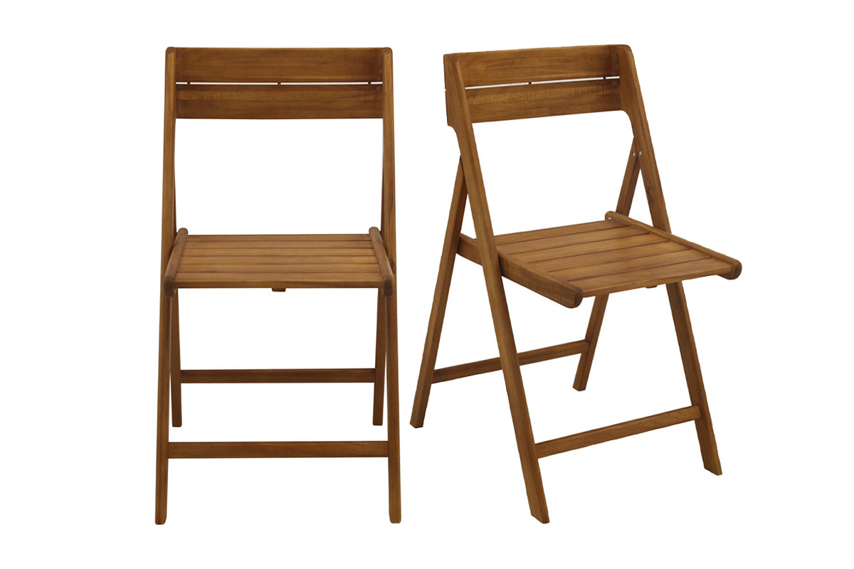 Chaises en bois massif pliantes vendues par lot de 2. Livrées prêtes à monter.