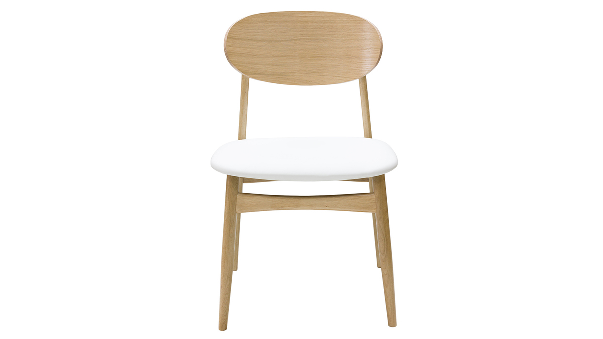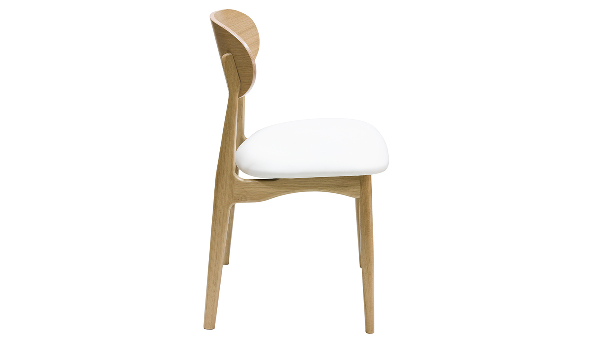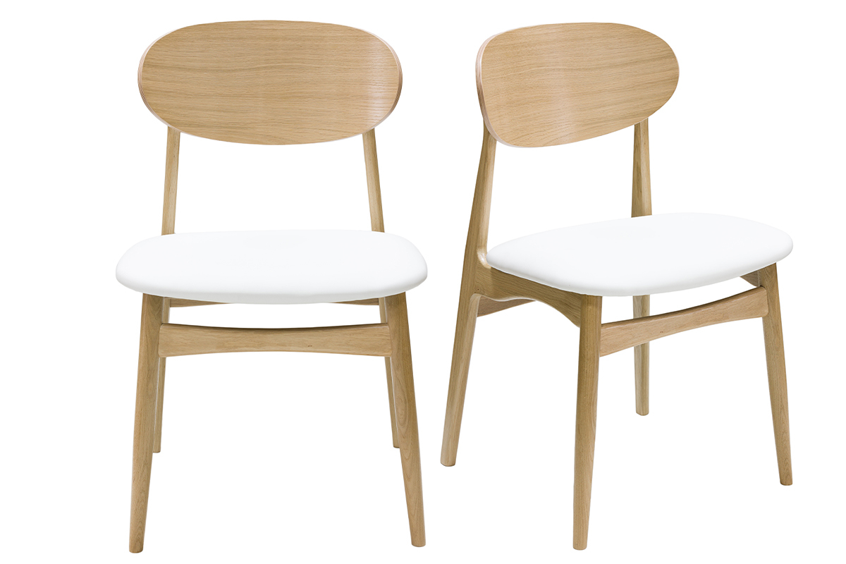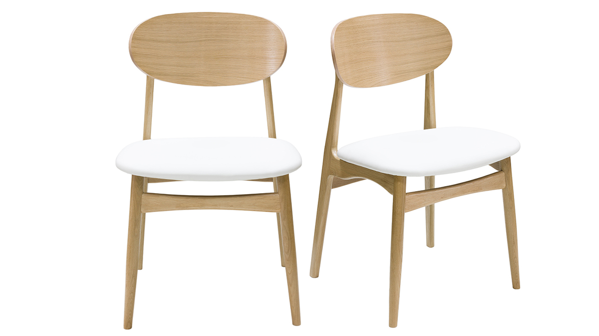 Structure en chêne massif et revêtement en polyuréthane blanc : le contraste opère ! Ces chaises de salle à manger en bois massif revisitent un classique pour insuffler un esprit à la fois tendance et chaleureux dans l'espace repas. Si au coeur d'une déco nordique, on imagine ces chaises scandinaves rythmer avec délicatesse une belle tablée, leur total look bois clair dans l'air du temps apportera caractère authentique et supplément d'âme aux intérieurs plus contemporains. Sublimées par de doux arrondis, ces chaises blanches et bois clair apporteront toute la douceur nécessaire pour se démarquer dans un décor trop rectiligne !