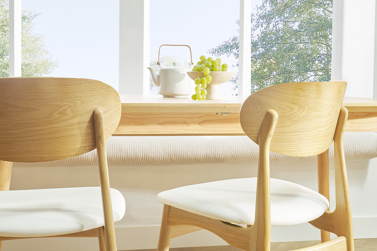 Formé par une large assise garnissage mousse densité 35 kg/m³ et un dossier légèrement incurvé pour épouser la posture du dos, ces jolies chaises de cuisine en bois massif et siège blanc, conjuguent au présent bien-être et style ! Voilà qui invite naturellement à passer à table...