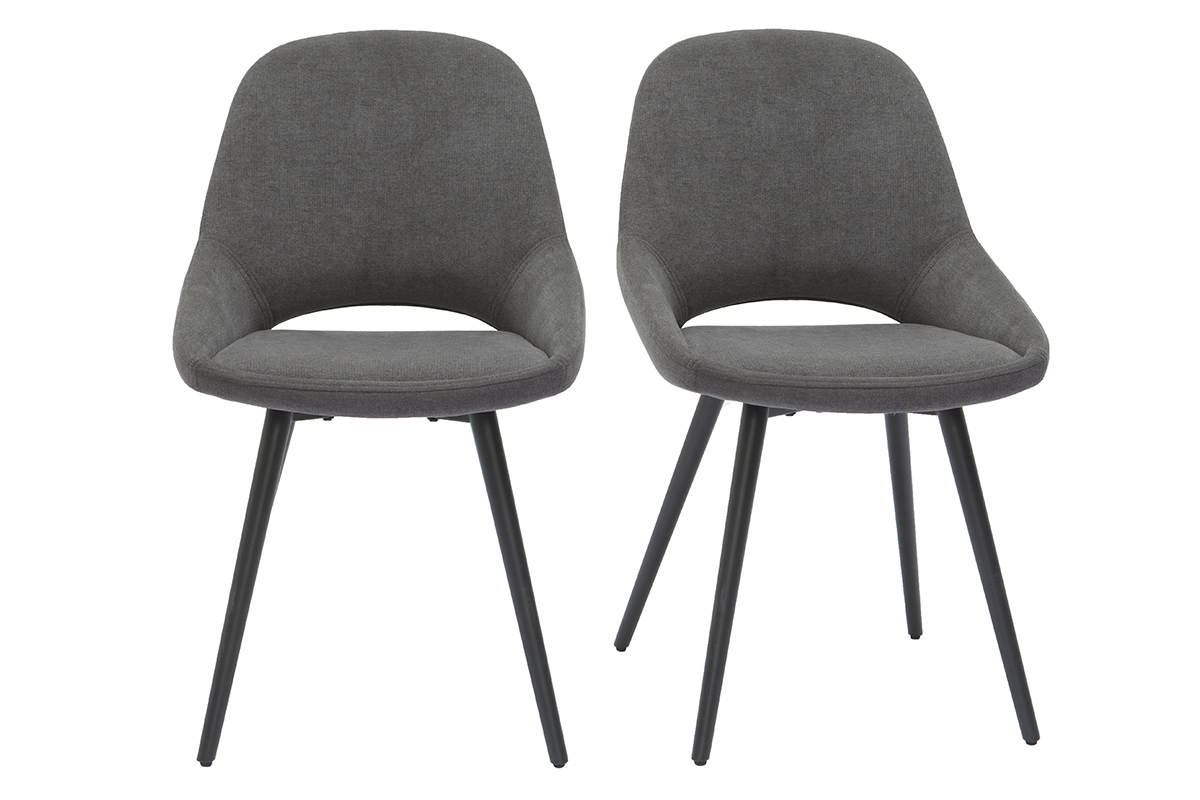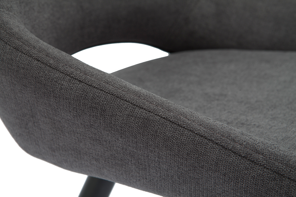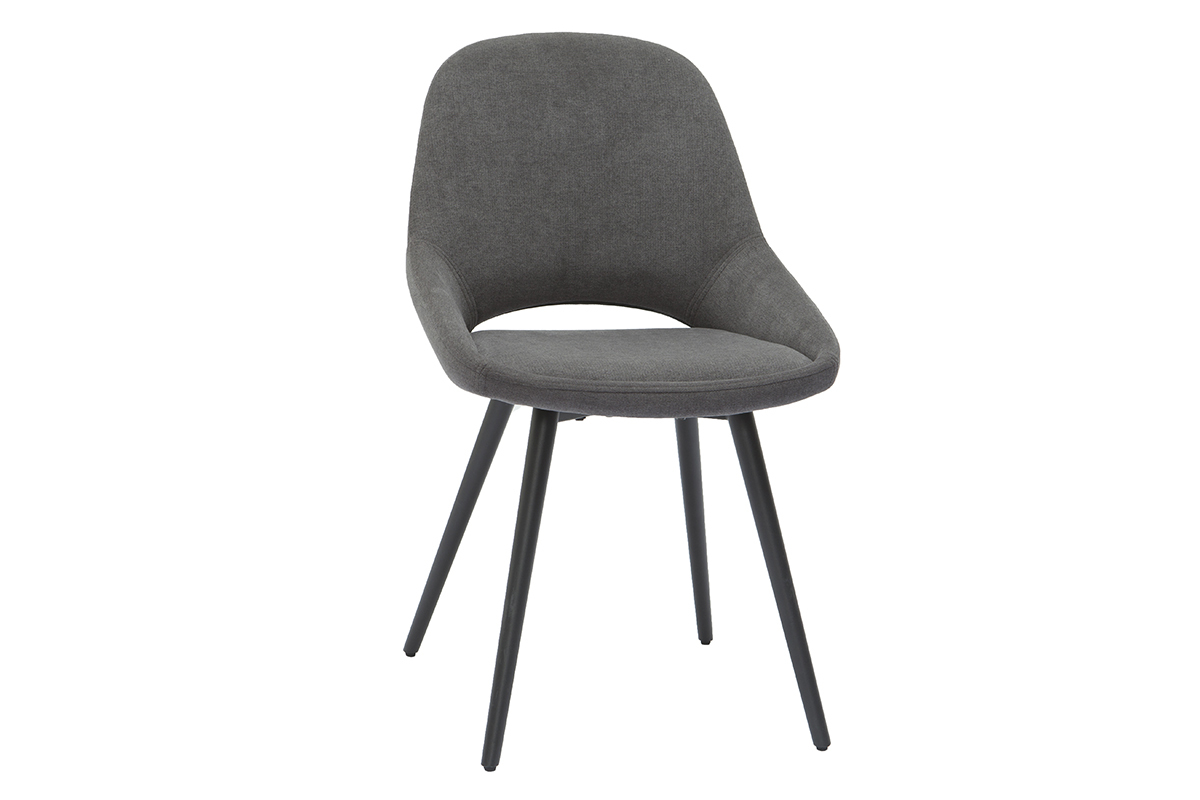 Habillées d'un beau tissu effet velours gris et reposant sur des pieds fuselés en métal noir, les chaises BODEGA affichent une élégance indéniable. Elles associent ce jeu de matières dans l'air du temps à une silhouette contemporaine, tout en courbes.