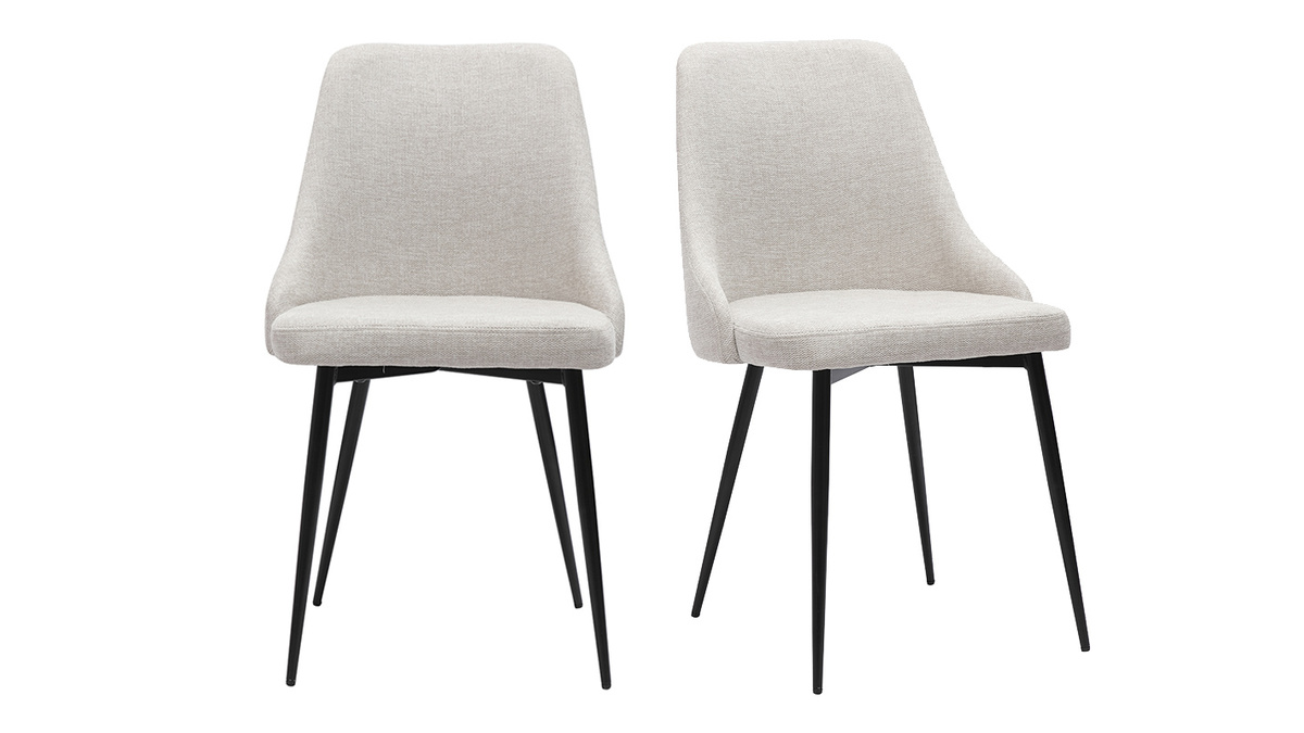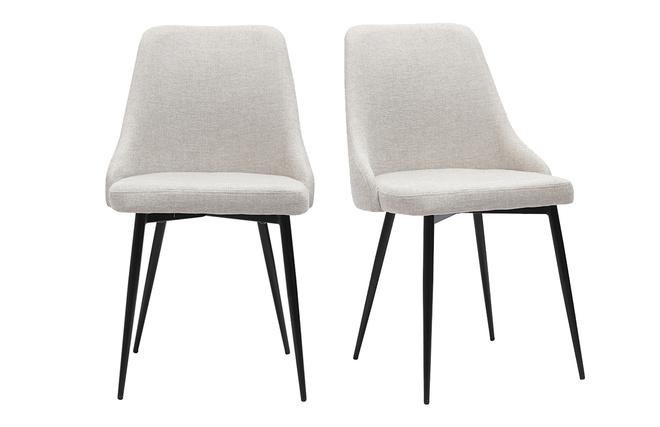 Chaises design en tissu effet velours beige naturel et métal noir (lot de 2) CULT vendues par lot de 2. Livrées prêtes à assembler. Montage simple, seuls les pieds sont à fixer.