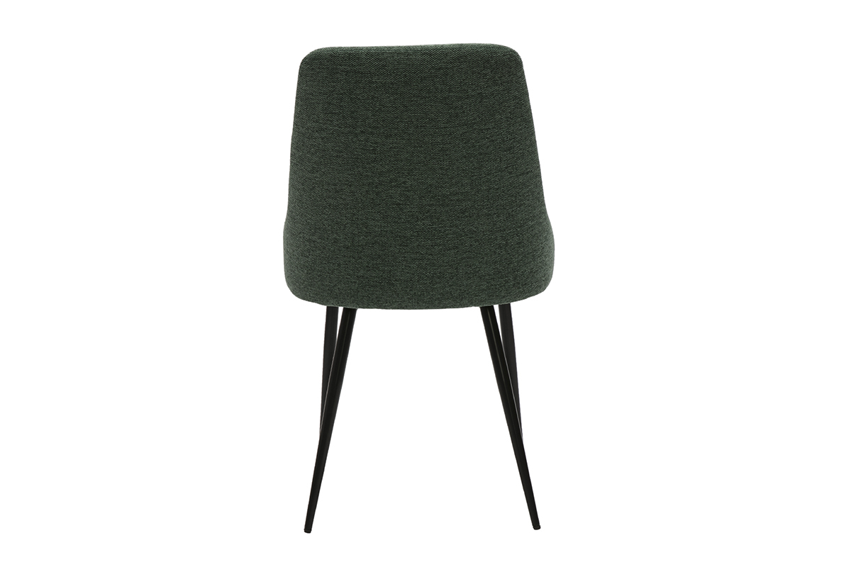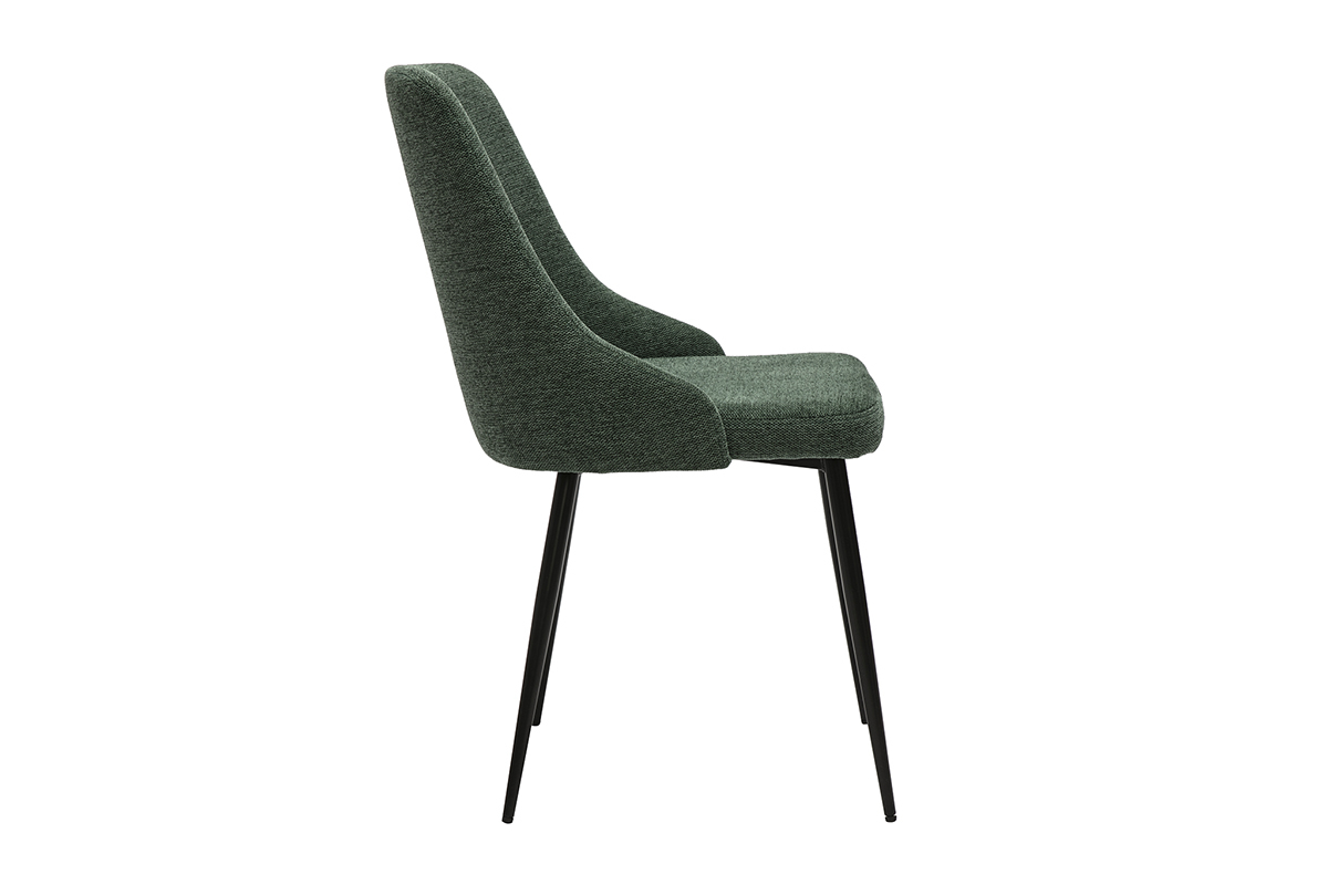 Associant la douceur d'un revêtement en tissu effet velours texturé vert foncé et une silhouette travaillée tout en finesse, ces chaises de cuisine design arborent un look des plus raffinés. Aussi chics que contemporaines, ces chaises vertes foncées sauront jouer de leur charme pour embellir votre intérieur. Ce modèle repose sur un piétement fuselé en métal noir. Une belle note de modernité !