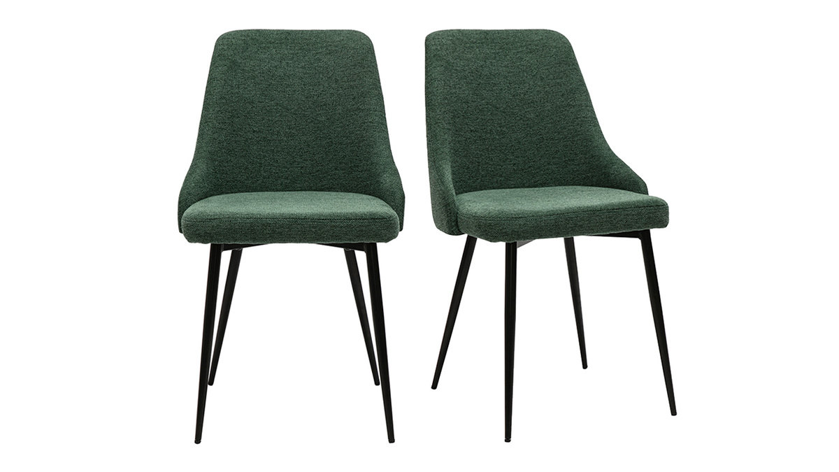 Chaises design en tissu effet velours texturé vert foncé et métal noir (lot de 2) CULT vendues par lot de 2.