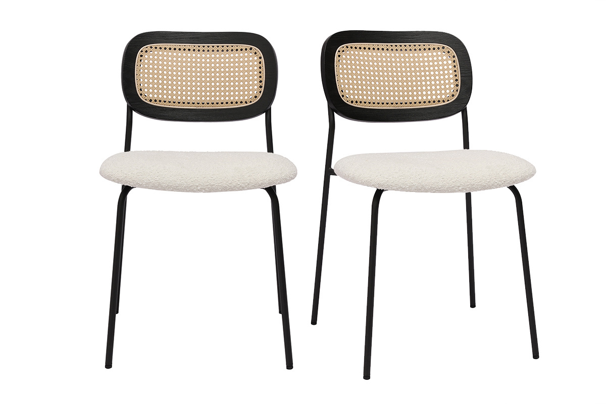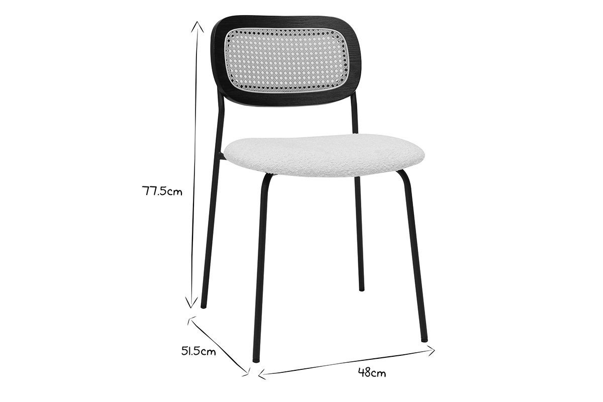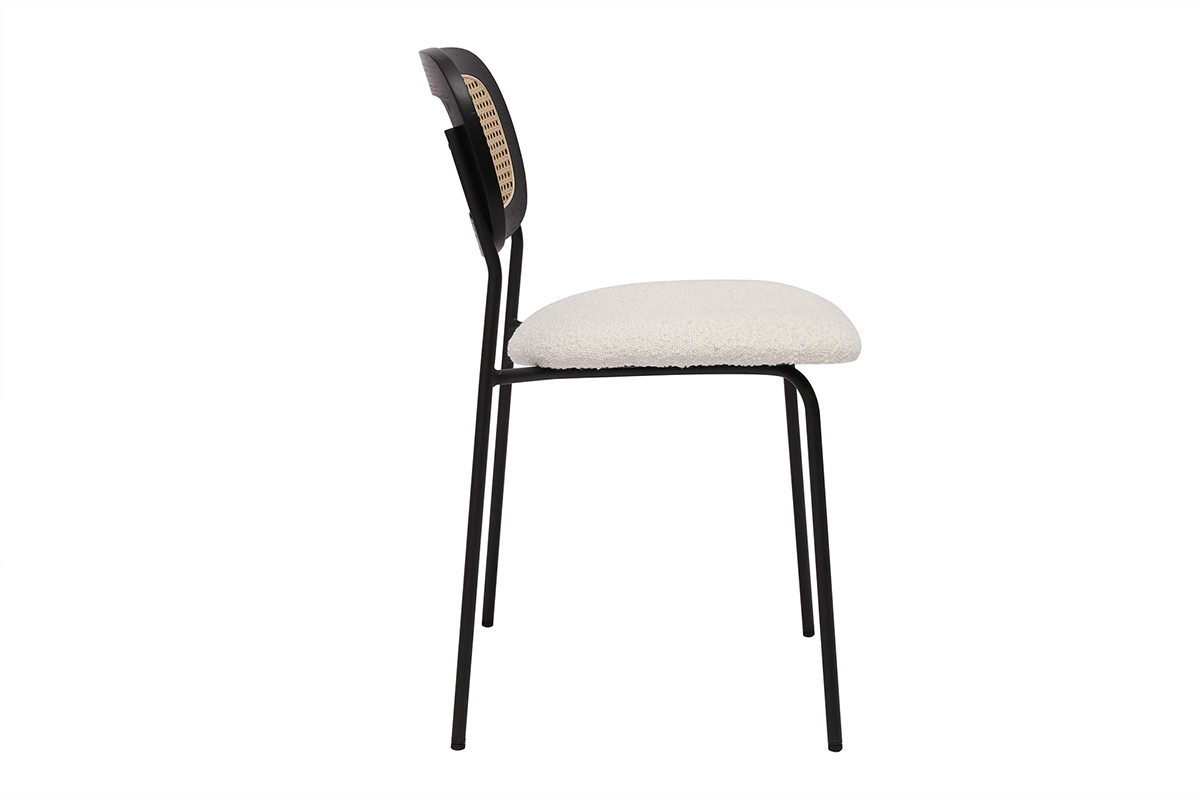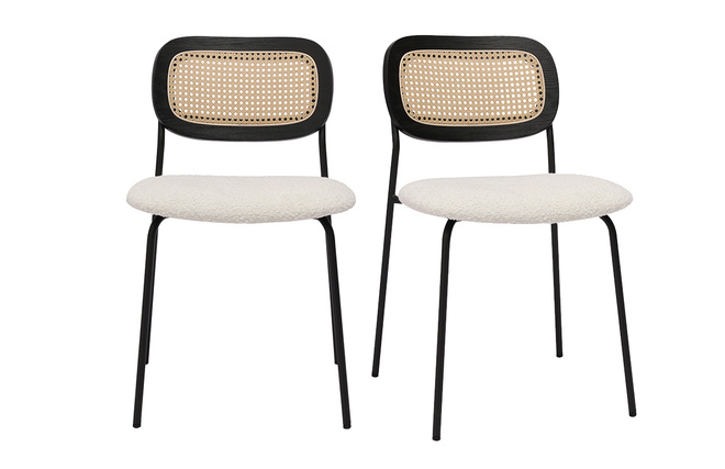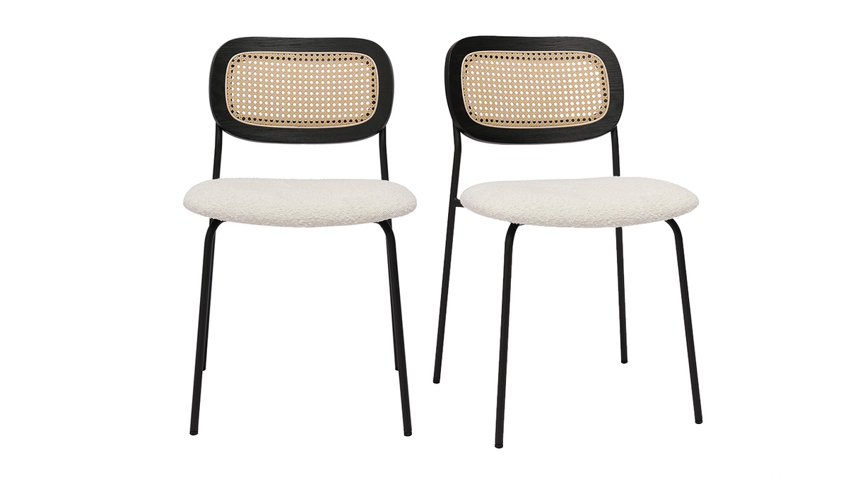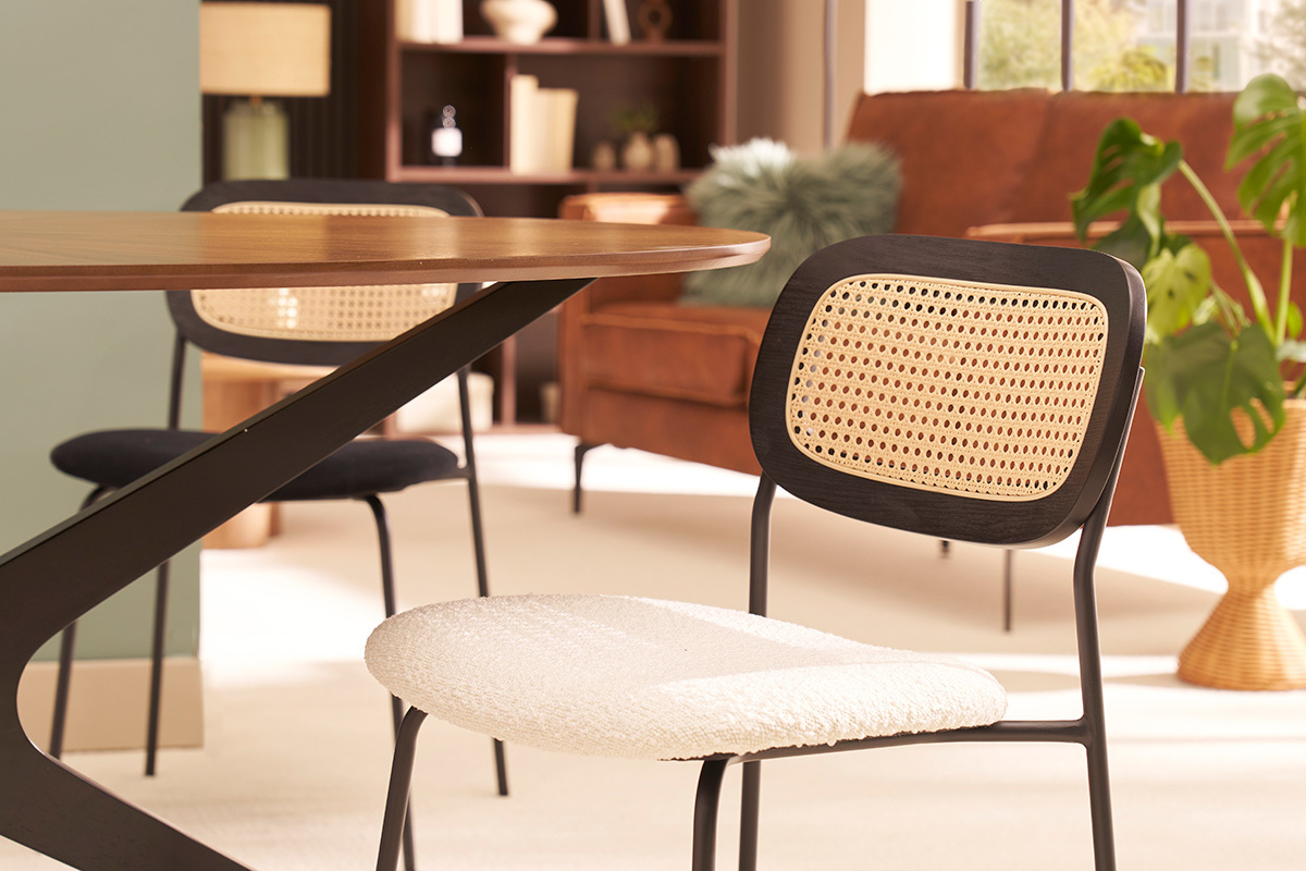 Les chaises MIRANDA, avec leur design soigné et leurs assises en tissu effet laine bouclée, incarnent l'élégance et le confort pour sublimer n'importe quel espace de vie. Idéales pour la salle à manger, elles allient style contemporain et inspirations naturelles, créant une ambiance chaleureuse et accueillante. Le dossier en cannage rotin synthétique ajoute une touche artisanale et authentique, rappelant les tendances modernes tout en apportant une note rétro chic. Cette combinaison unique de matières en fait un choix idéal pour les intérieurs à la recherche d'originalité et de caractère.
