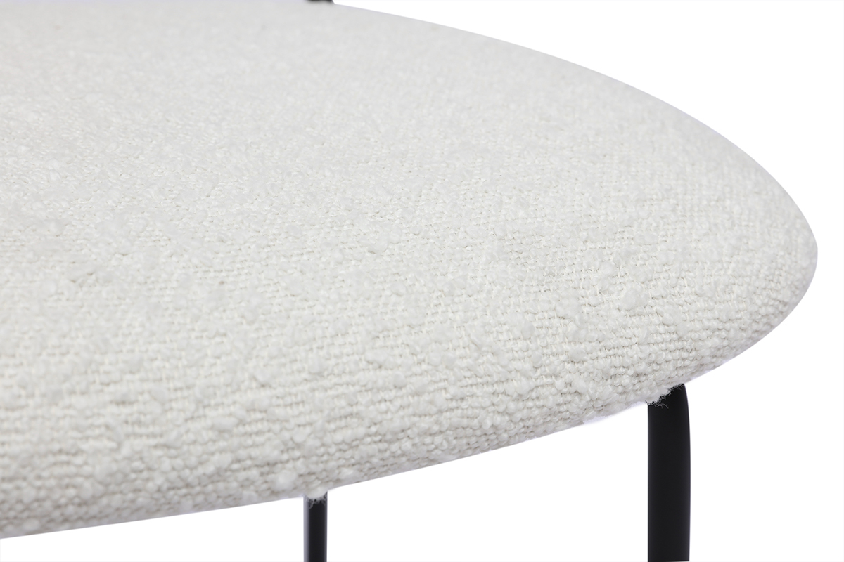 Conçues pour offrir un confort optimal, ces chaises se distinguent par leur assise en tissu doux et agréable au toucher, qui rappelle le confort luxueux du velours, mais avec une texture plus légère et subtile. Le coloris blanc, neutre, s'intègre parfaitement dans différents types de décoration, qu'elle soit minimaliste, scandinave ou inspirée du style japandi. Les pieds en métal noir, quant à eux, offrent une structure solide et stable, tout en ajoutant une touche industrielle discrète qui rehausse l'ensemble.