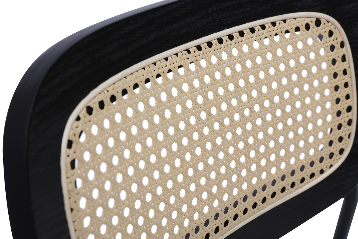 Matière dossier : contreplaqué de peuplier poudré noir et rotin synthétique