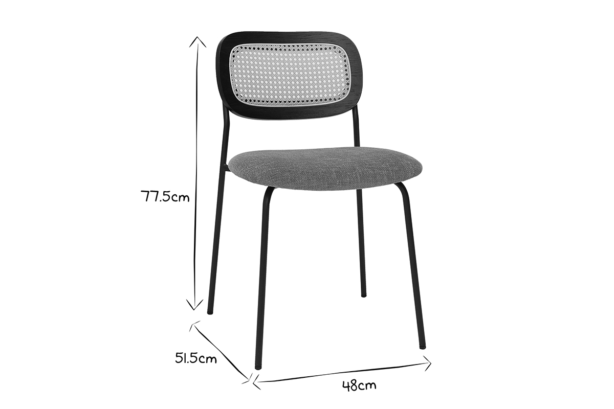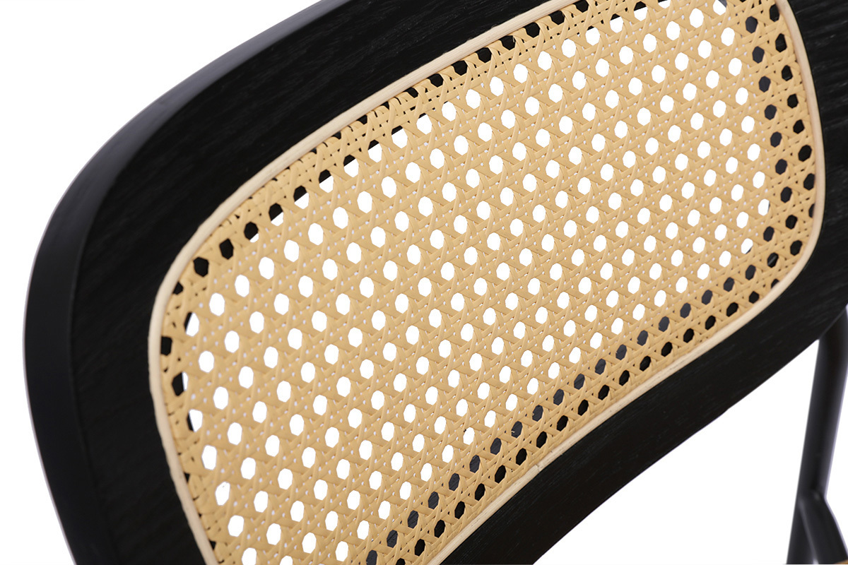 Matière dossier : contreplaqué de peuplier poudré noir et rotin synthétique