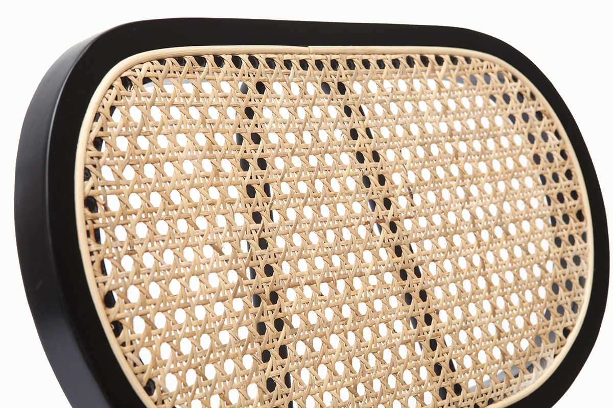 Ce modèle de chaise design embrasse le passé avec son dossier en cannage de rotin et le futur avec son piètement effilé en métal noir. Des matières qui résisteront sans sourciller au passage du temps ! Revival vintage - qui n'a rien perdu de sa superbe - le cannage se réinvente pour perdurer avec modernité. Cette fibre naturelle entrelacée qui apporte une touche aérienne, séduit par son caractère authentique et dessinera au sol de jolis jeux d'ombres et lumières.