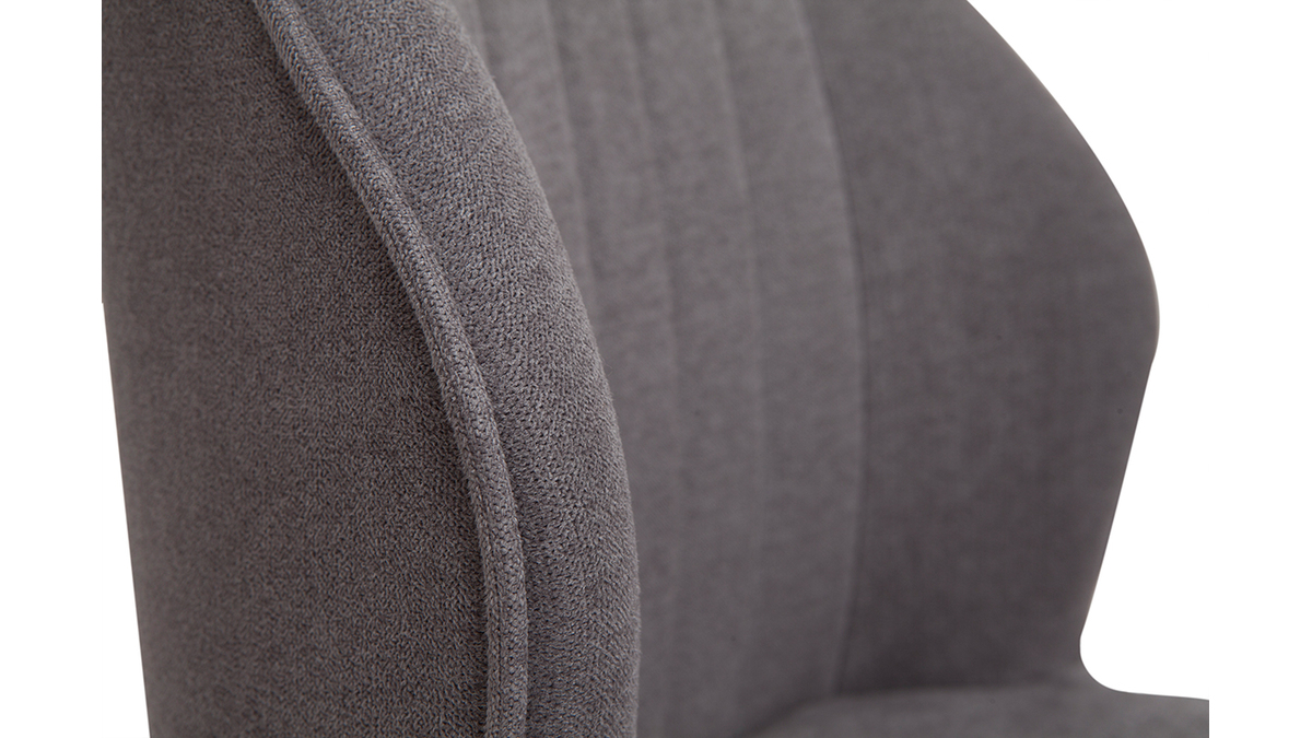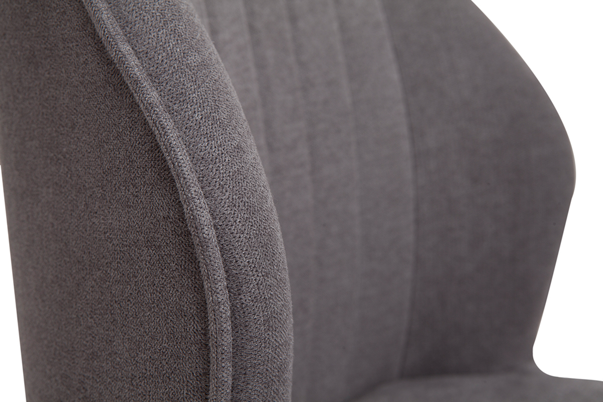 Ce duo de chaises, plus stylé que jamais, met en avant une silhouette raffinée valorisée par un effilé piètement noir à l'inspiration rétro. Le siège est habillé d'un tissu effet velours au toucher très agréable. Un textile resistant, aux accents cosy et à l'aspect delicat qui se pare d'un profond coloris gris, cette nuance intemporelle et indémodable sera le symbole d'un intérieur sobre et apaisant. Matière et couleur sont sublimés par des coutures contrastées sur le dossier, une fantaisie glamour qui donne de l'allure à un look tout en finesse. Bien que ce modèle s'envisage dans de nombreux intérieurs - autant modernes qu'intemporels - les chaises FANETTE trôneront en beauté dans une cuisine ou une salle à manger à la signature déco rétro chic.