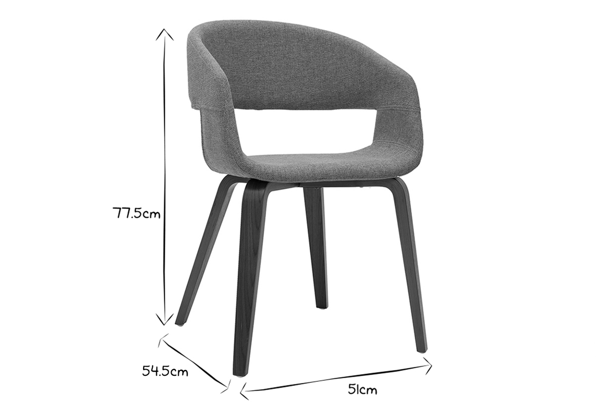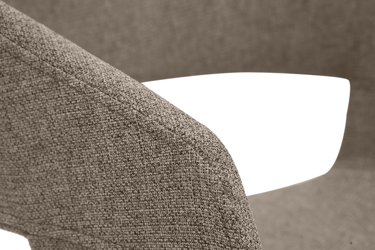 Des formes généreuses qui mêlent équilibre et légèreté pour des repas conviviaux tout confort ! Rembourrés d'une mousse moelleuse (densité 25 kg/m3) pour un agréable maintien, les larges assises accueillantes et hauts dossiers galbés unissent leurs courbes jusqu'aux accoudoirs enveloppants. L'ensemble s'habille d'un revêtement en tissu (97% polyester et 3% nylon), une matière résistante et agréable au toucher. Enfin, les 4 solides pieds placage chêne garantissent robustesse et grande stabilité.
