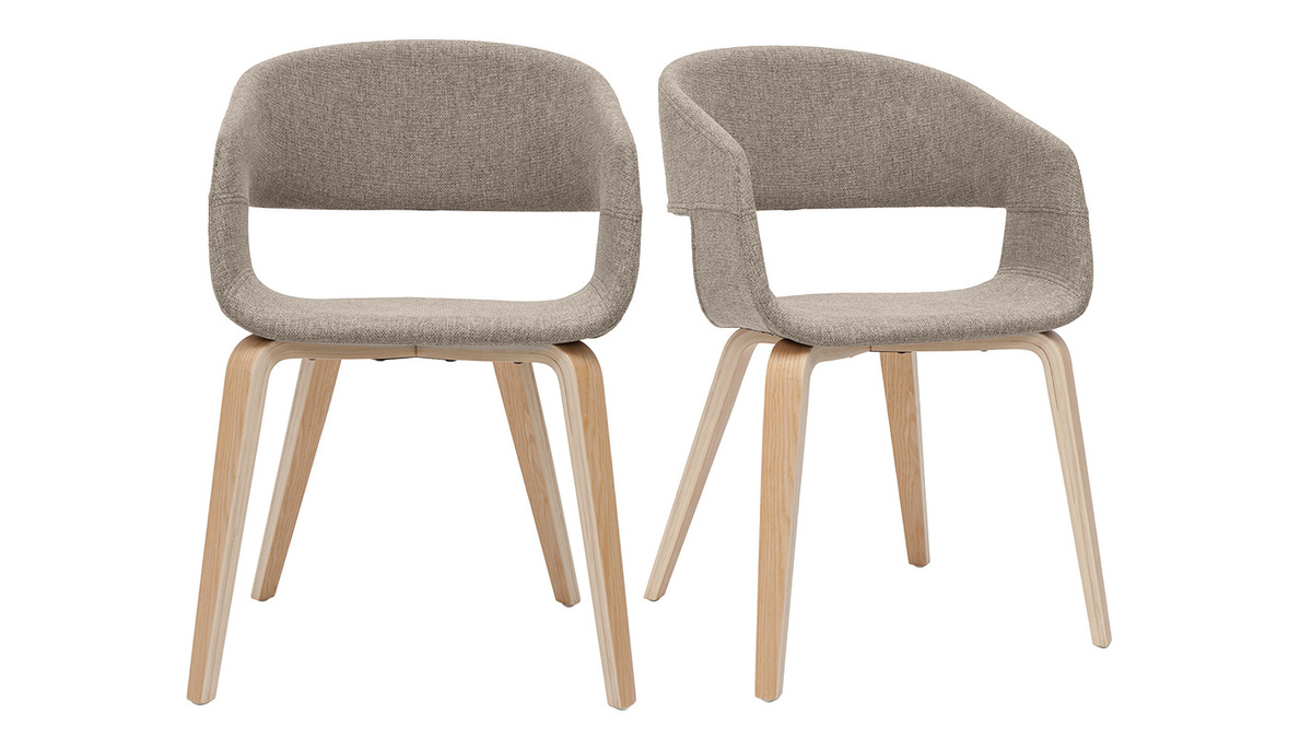 L'élégant piètement en bois clair et le siège tout en rondeur coloris taupe se partagent la vedette et conjuguent avec élégance design moderne et inspiration nordique. Les beaux volumes galbés signent un look singulier ultra tendance. Multipliées autour d'une table en bois clair dans un univers scandinave ou intemporel, ce modèle de chaise en bois moderne apportera raffinement et note cosy à votre coin repas.