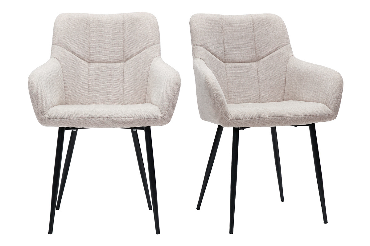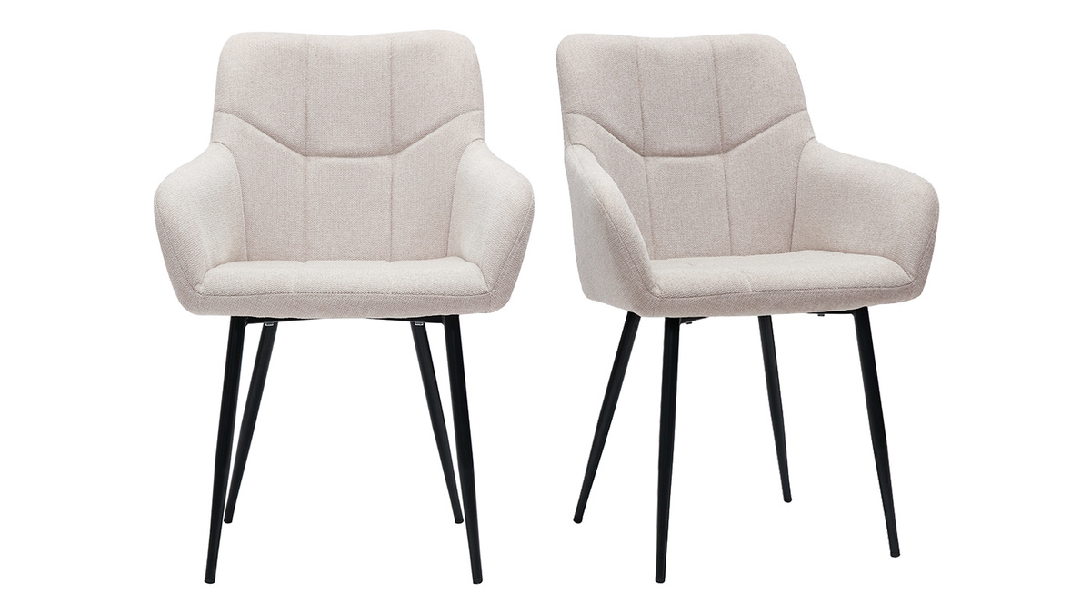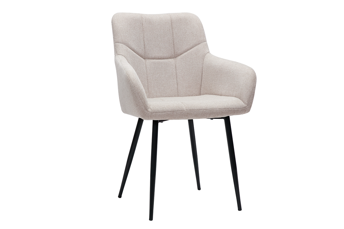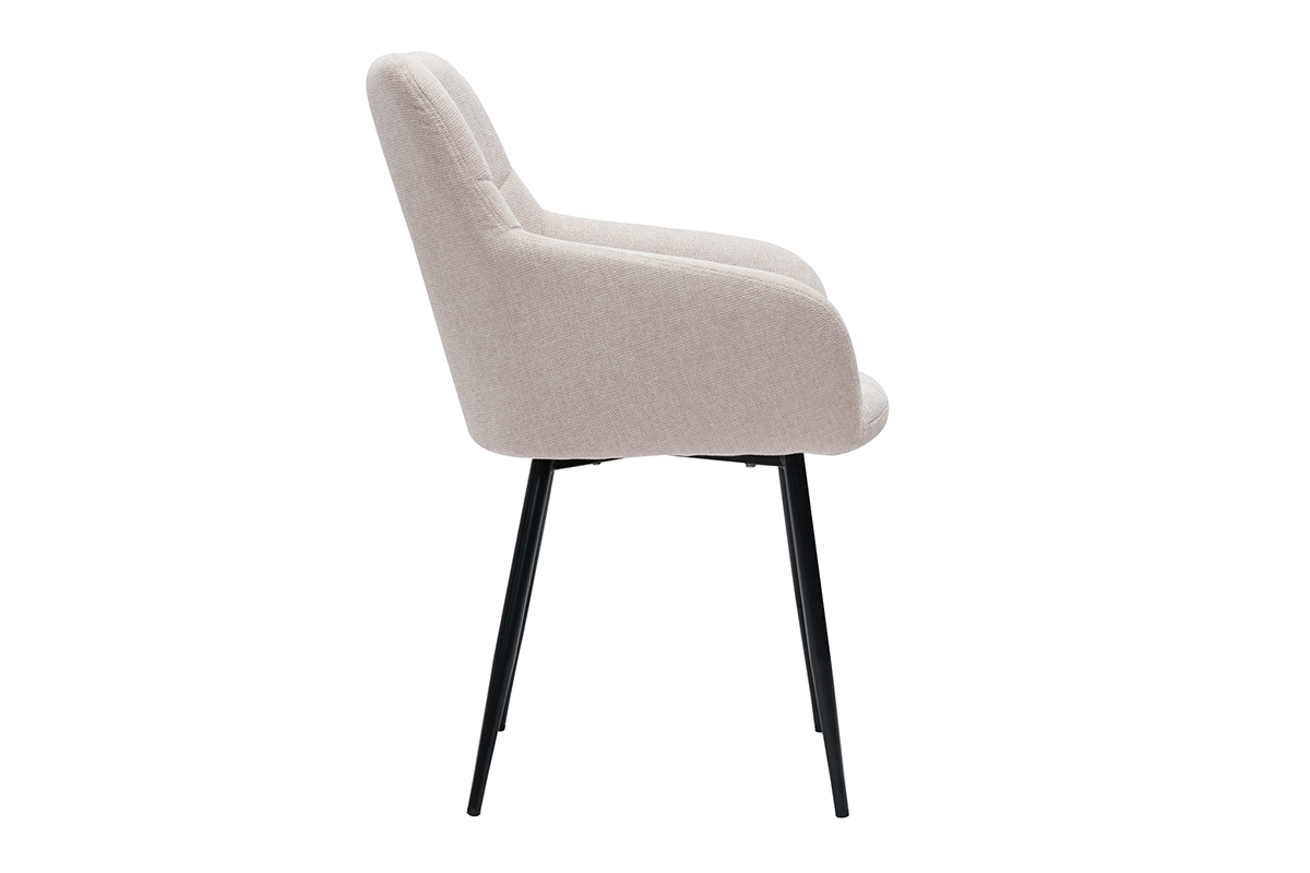 Le siège beige en tissu effet velours texturé forme un tandem chic et intemporel avec les pieds en métal noir. Un look contrasté, tout en rondeur et élégance qui apportera de la douceur aux intérieurs à la déco moderne et minimaliste.