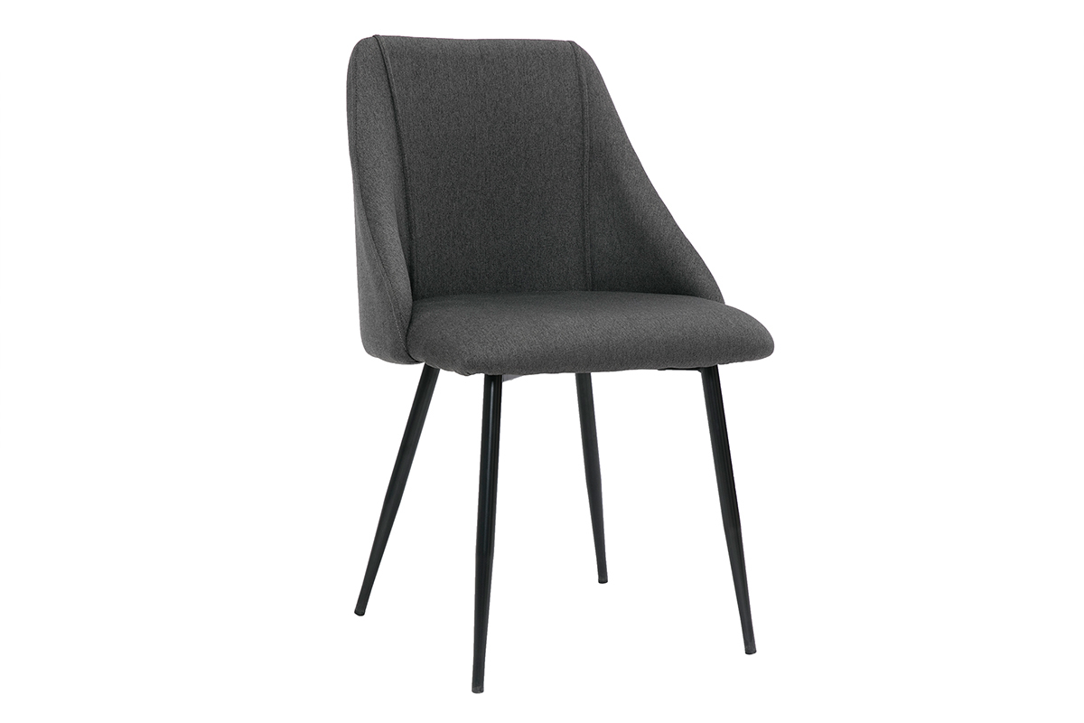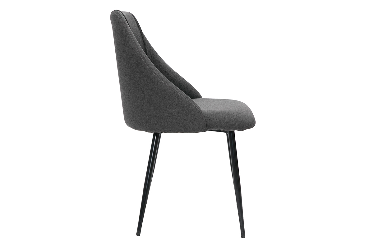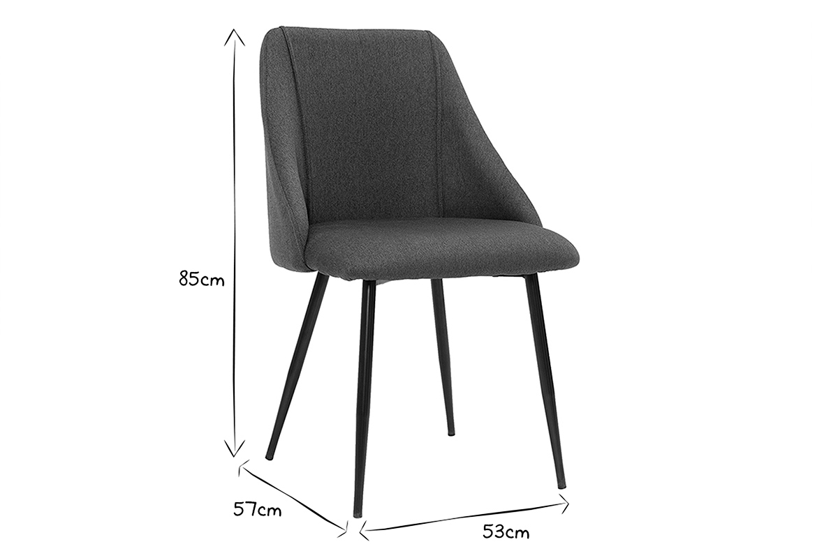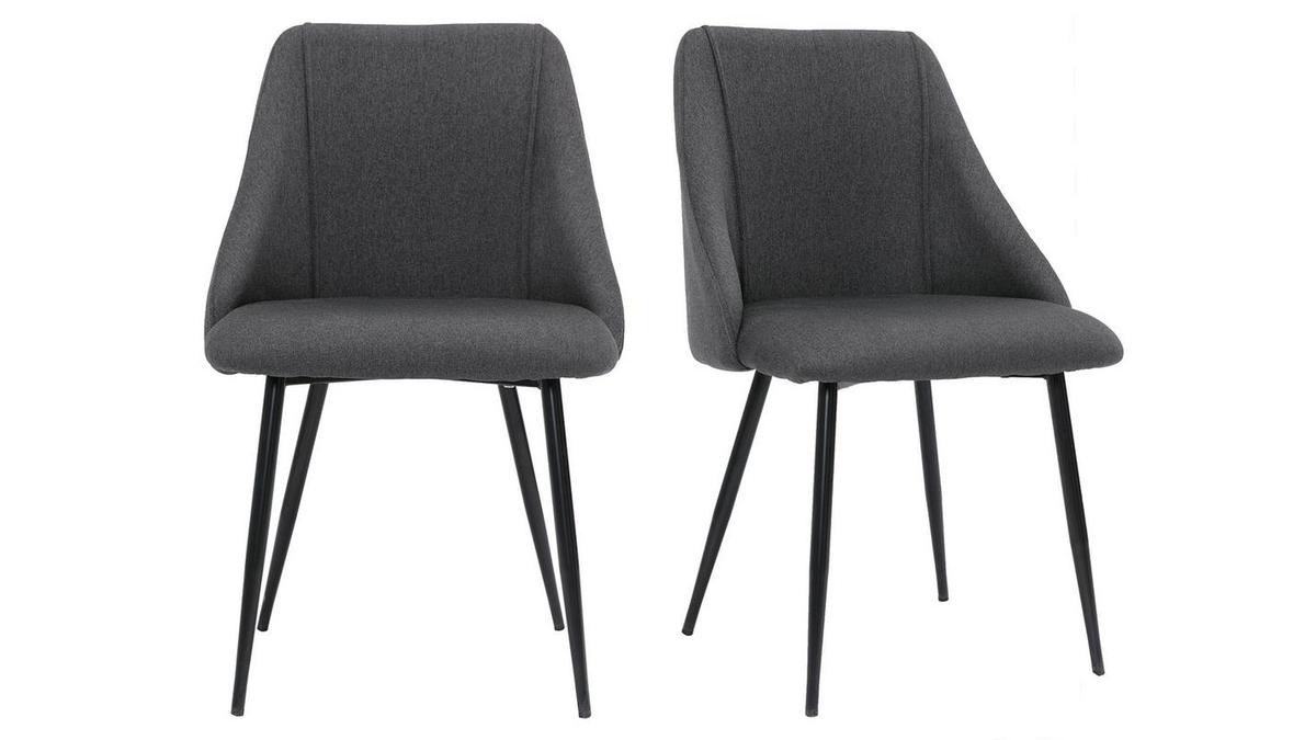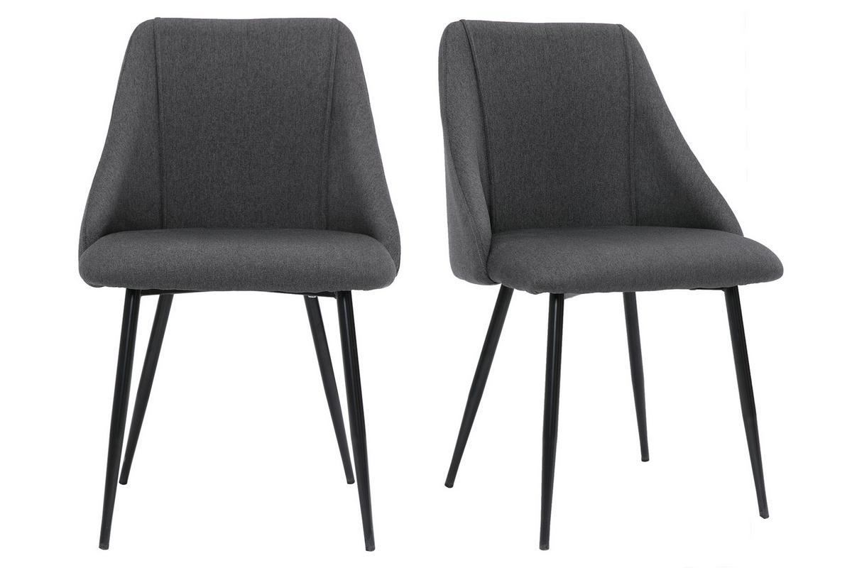 Chaises en tissu gris foncé et métal noir HIGGINS vendues par lot de 2. Livrées prêtes à assembler. Montage simple, seuls les pieds sont à fixer.