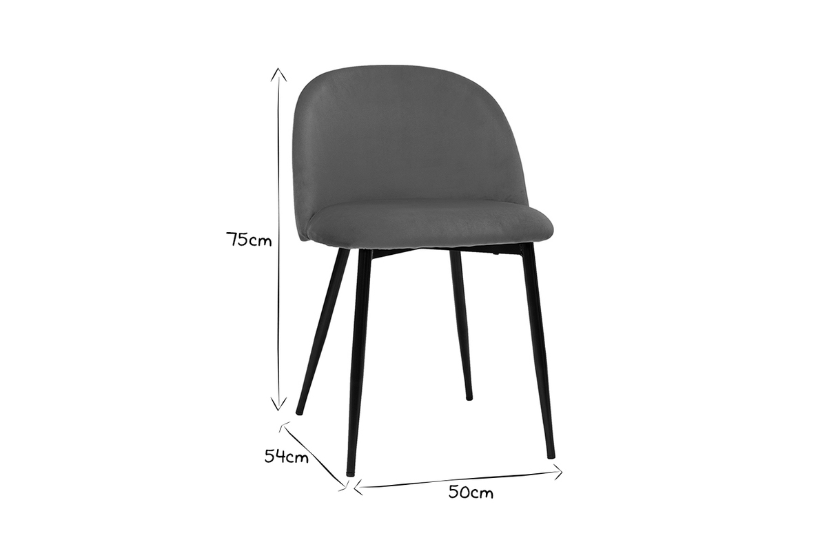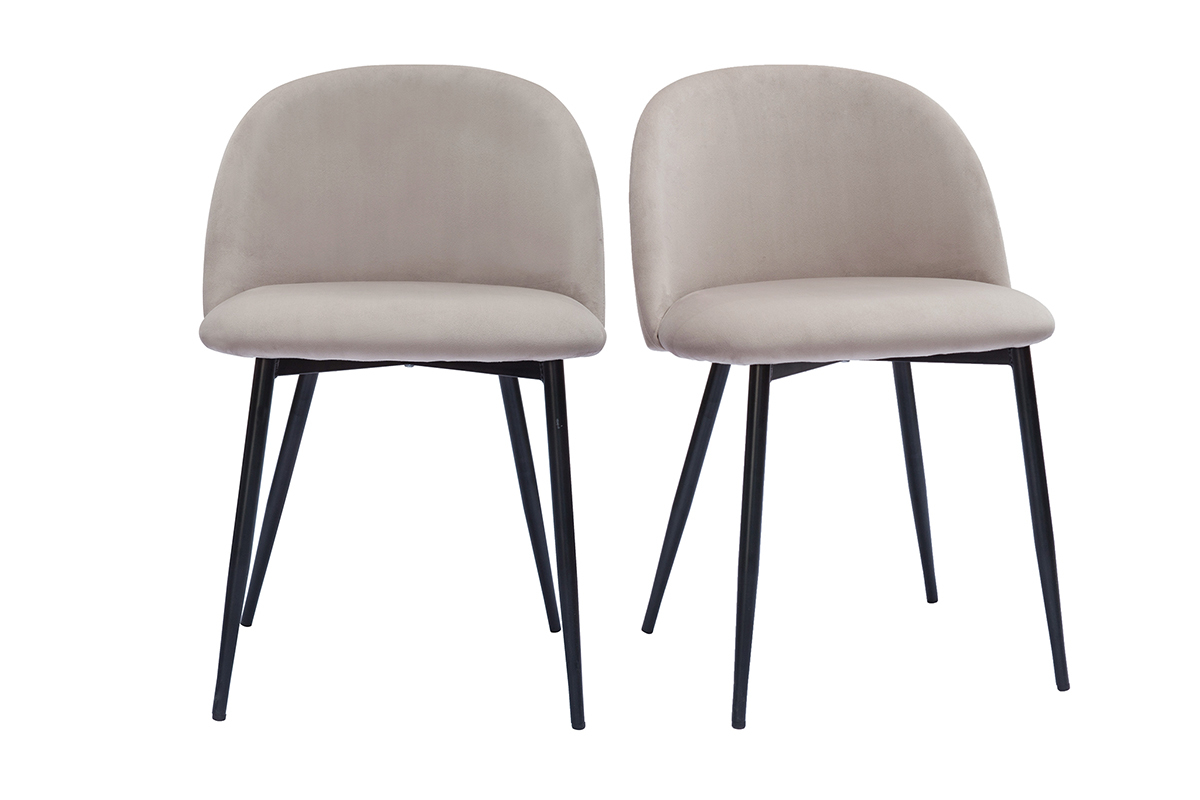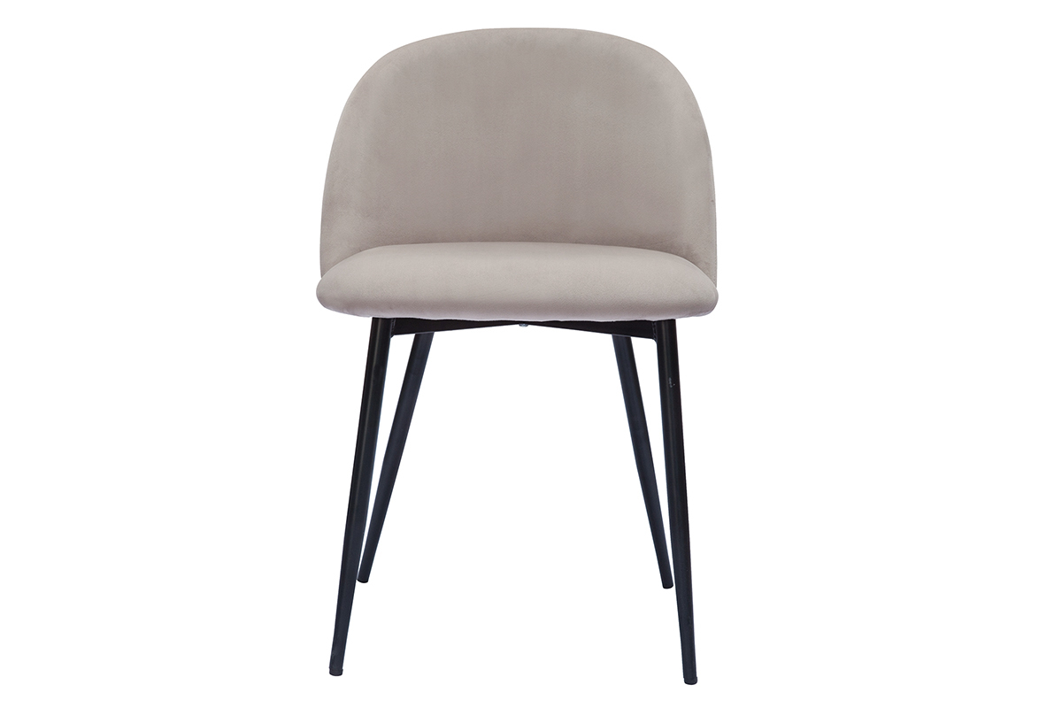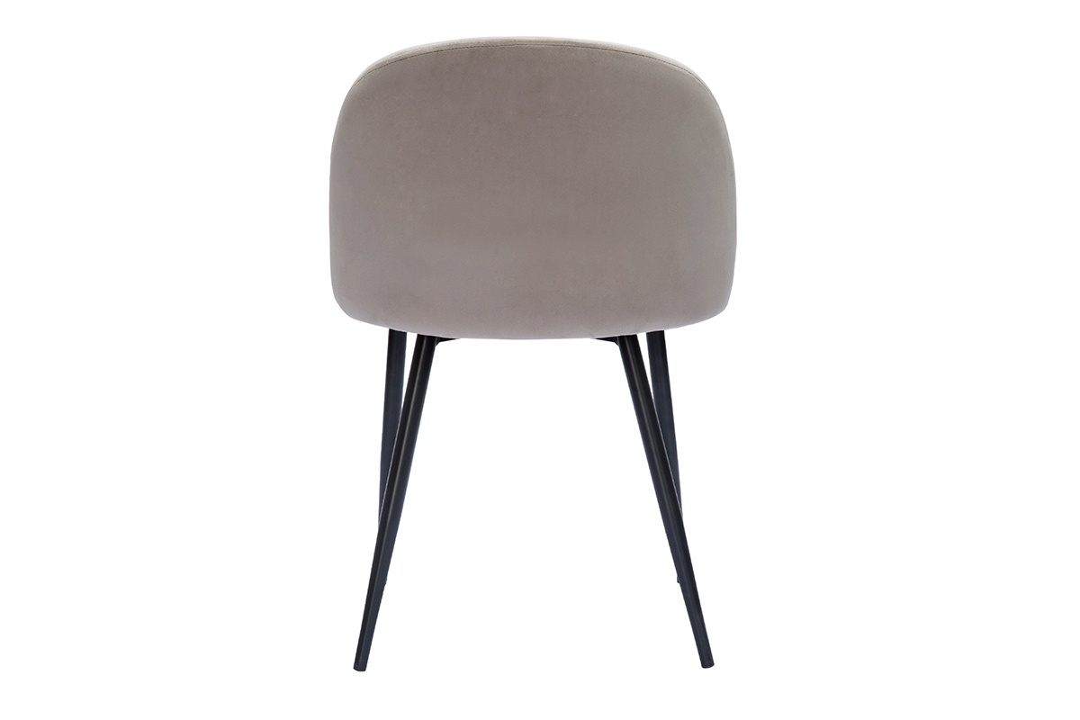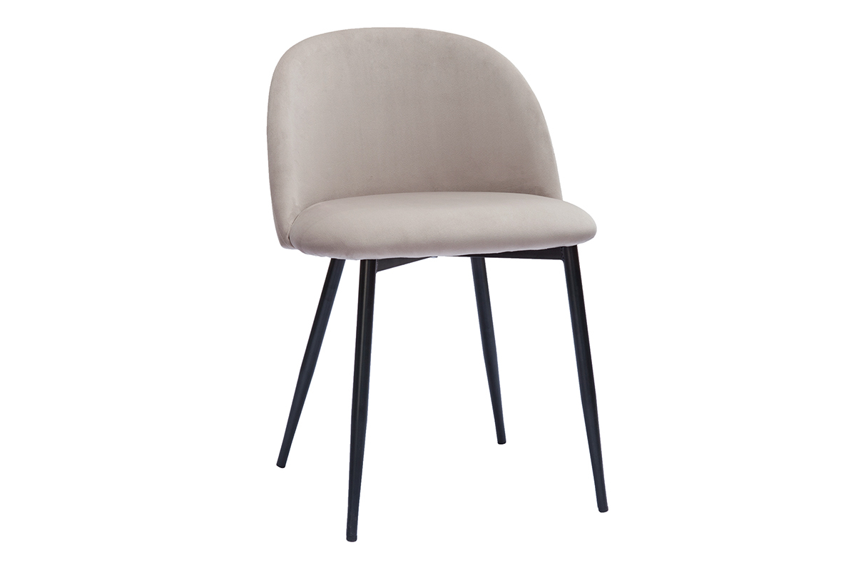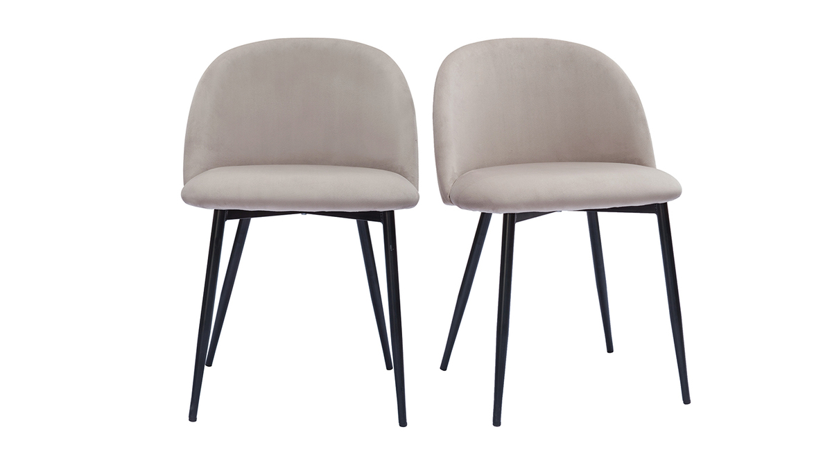 Revêtement en velours taupe, pieds en métal noir, lignes arrondies : les chaises CELESTE reflètent tout ce qui fait le charme du style contemporain.