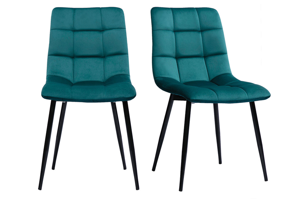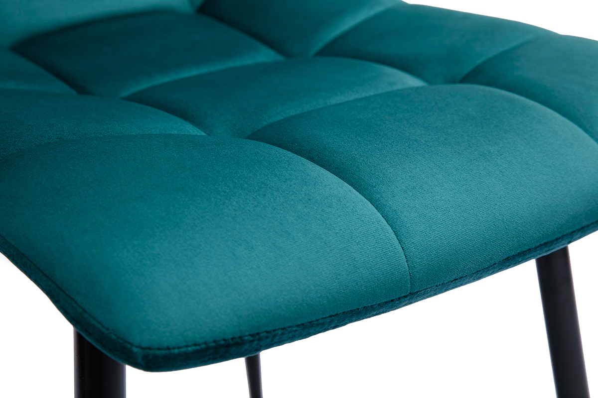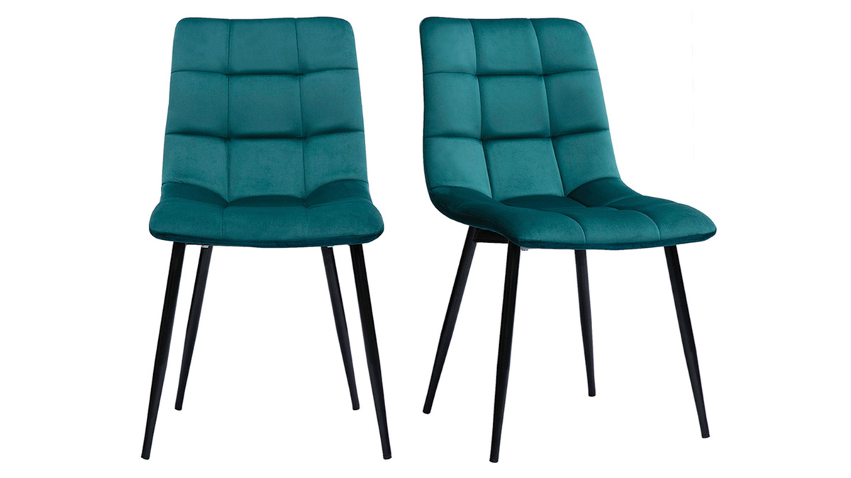 En associant la douceur d'un tissu velours (100% polyester) à l'élégance d'un capitonnage, ces chaises de salle à manger bleu canard sublimeront un séjour ou une cuisine à l'atmosphère chic et feutrée. Avec leur joli jeu de surpiqûres, elles seront tout aussi indiquées dans un intérieur plus contemporain.