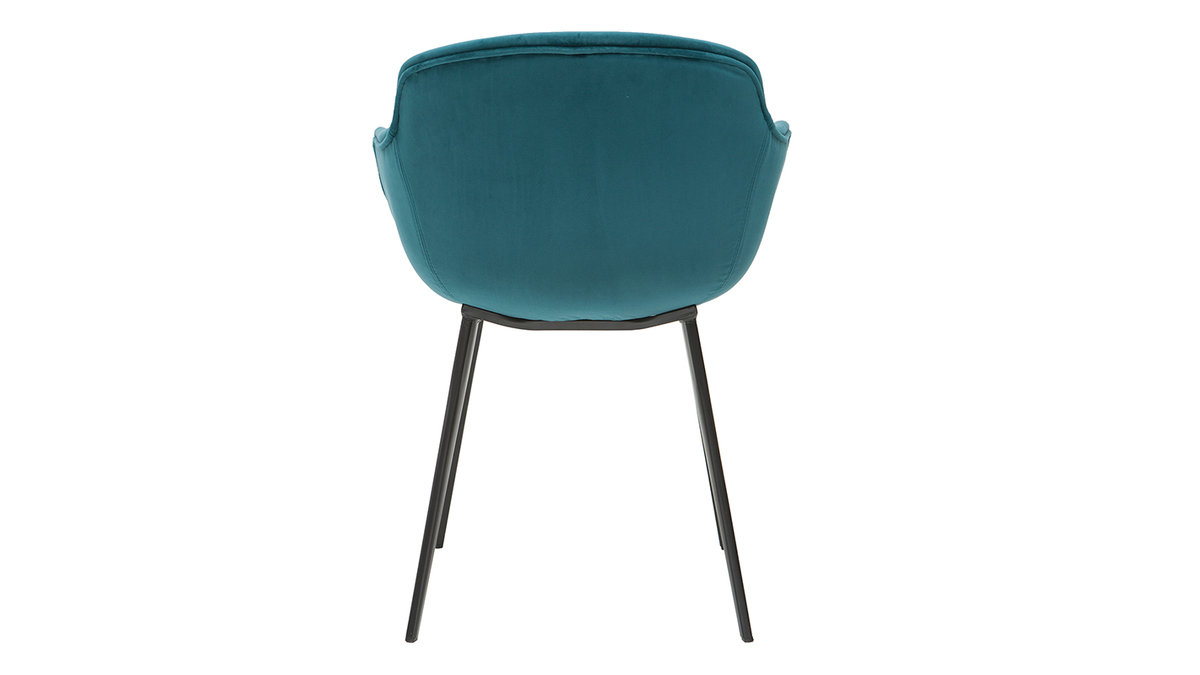 piètement fuselé en métal noir est sobre et doté d'une grande légèreté visuelle, ce qui permet d'associer facilement ces chaises bleu pétrole à différents styles de tables à manger.