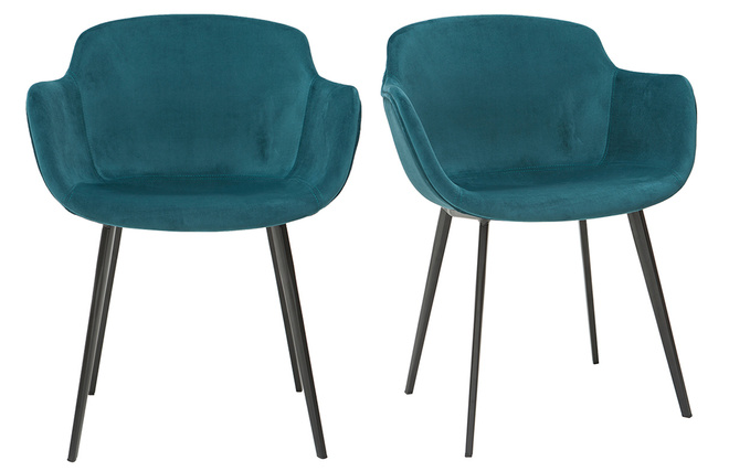 Chaises design en tissu velours bleu pétrole et métal noir (lot de 2) SAKE (Ce produit n'est plus commercialisé)