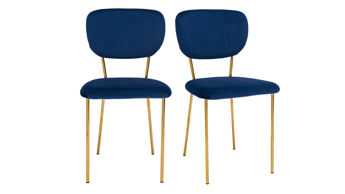 Les assises bleu foncé et or LEPIDUS sont un concentré de tendance et de raffinement. Le velours utilisé pour recouvrir le siège et le dossier est un matériau dans l'air du temps qui a l'avantage d'apporter noblesse et chaleur à un intérieur. L'aspect luxueux du velours est accentué par une structure fine en métal doré. La couleur or permet de donner de l'éclat à son séjour tout en mettant en valeur le coloris bleu foncé du siège.