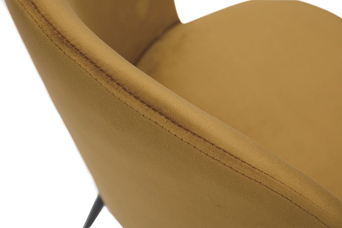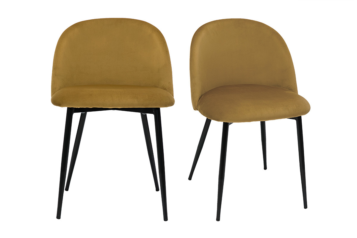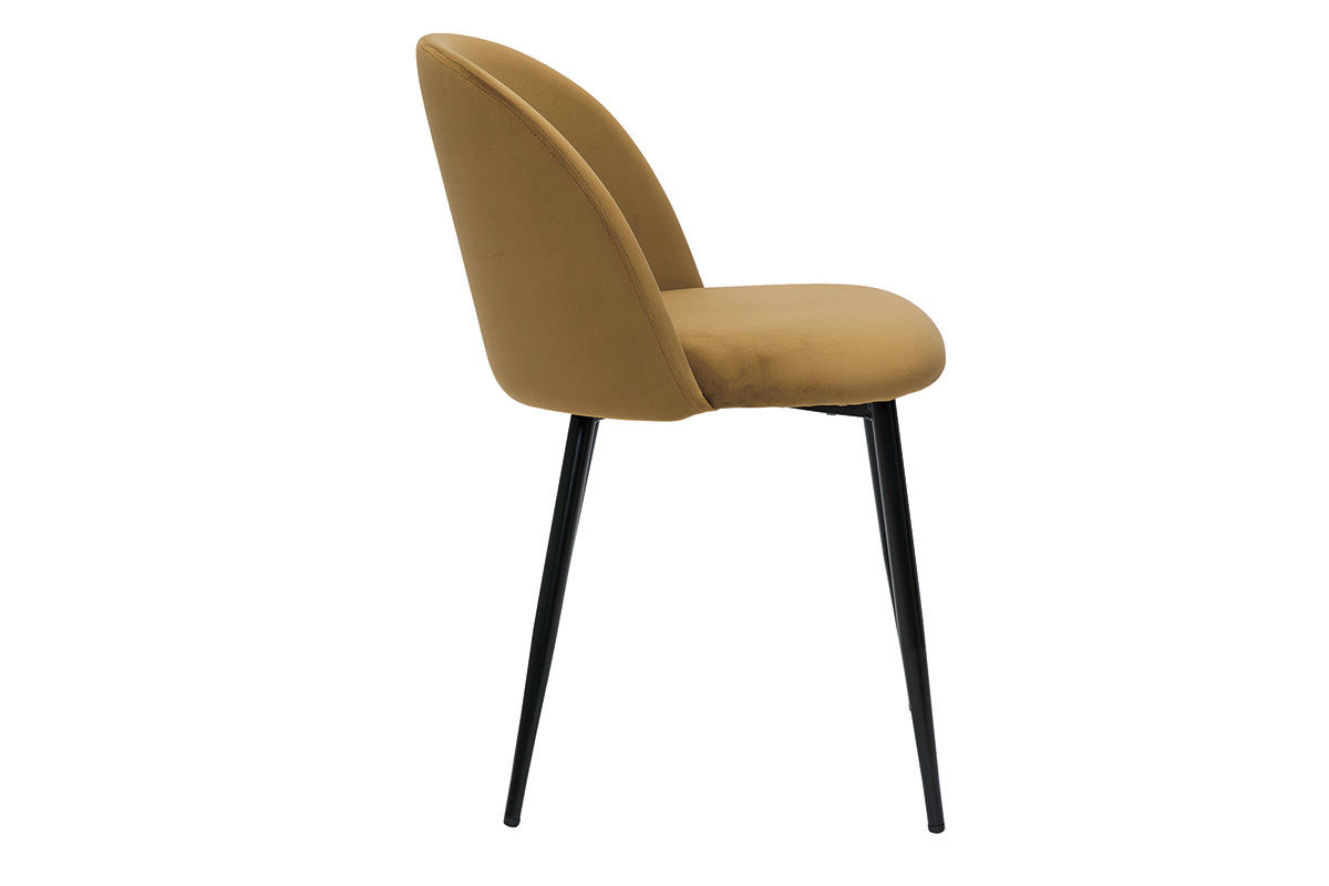 Revêtement en velours bronze, pieds en métal noir, lignes arrondies : les chaises CELESTE reflètent tout ce qui fait le charme du style contemporain.